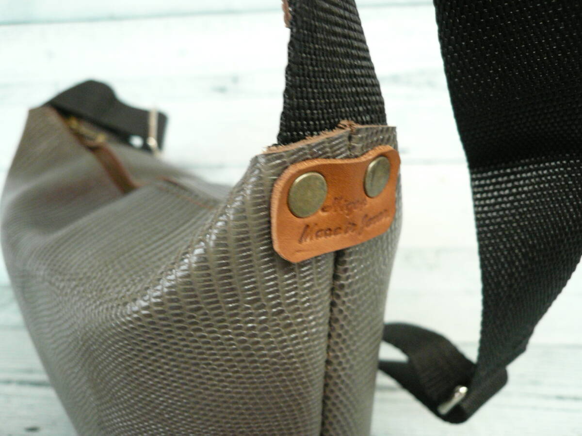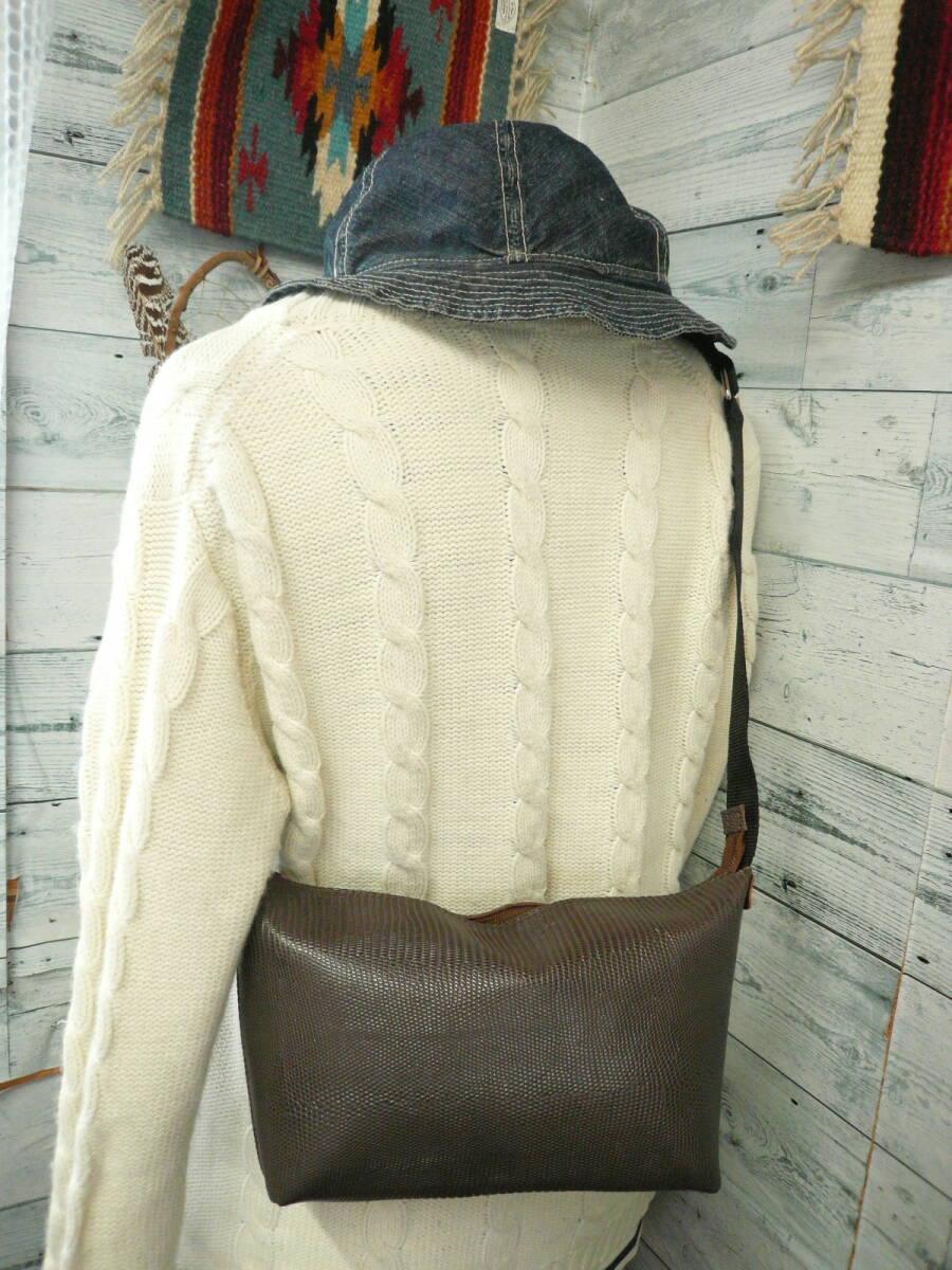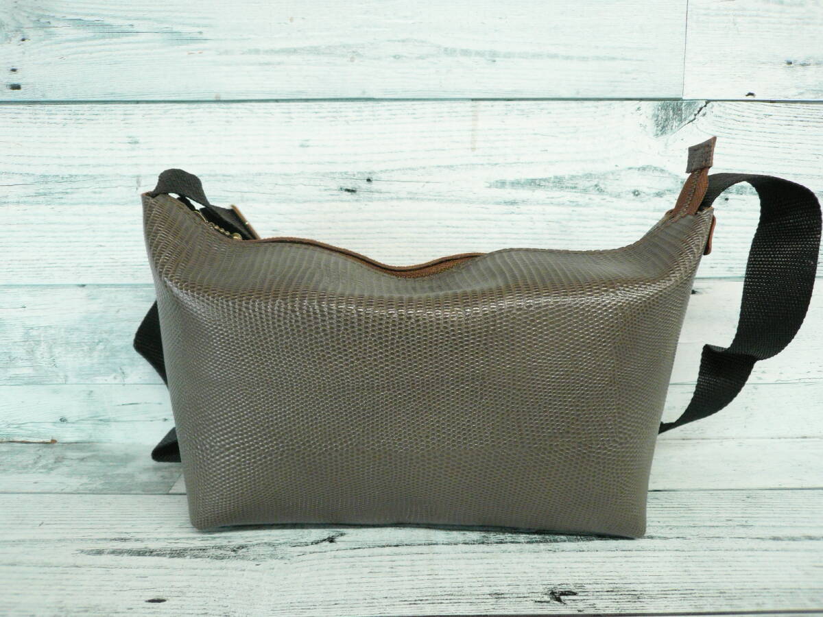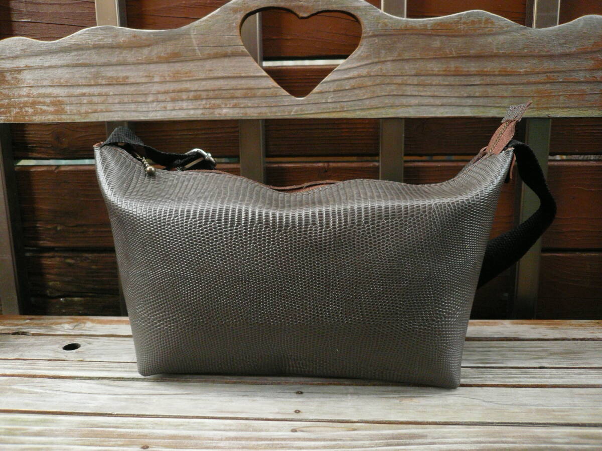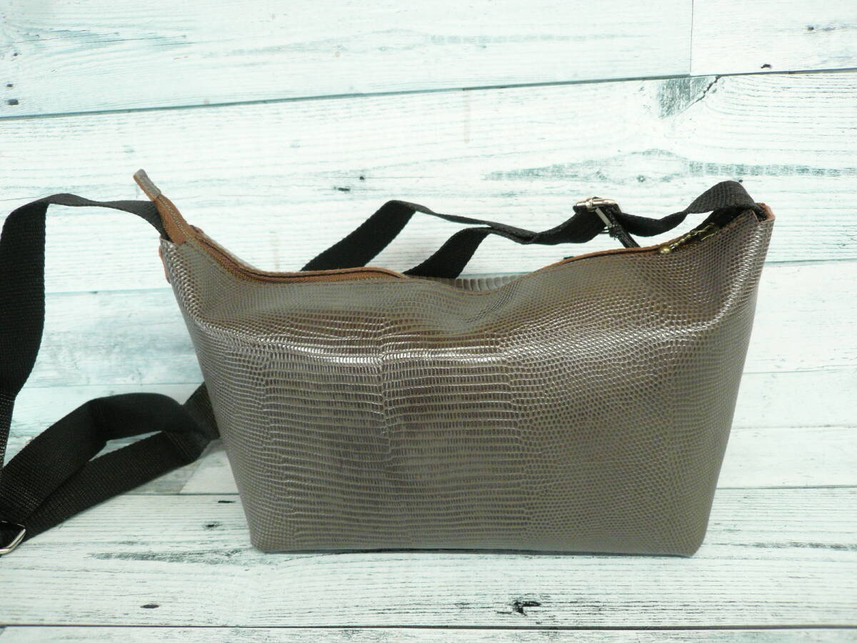 【YKKファスナー!ショルダーバッグ牛革リザード型押しレザー】硬めハリあり ハンドメイドバッグ 作家手作り日本製 made in Japan 584