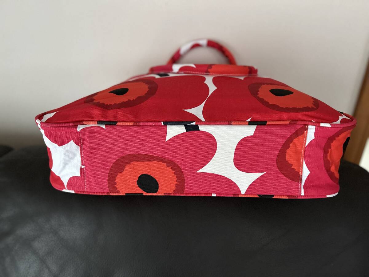 自宅保管の未使用品です。サイズは横幅最大48㎝、高さ30㎝、奥行き11㎝。(素人採寸の為多少の誤差はお許しください。中に詰め物をして計測。)内側にファスナーポケット1個有り。同梱可能(3日以内)他にも出品していますので、ご覧ください。