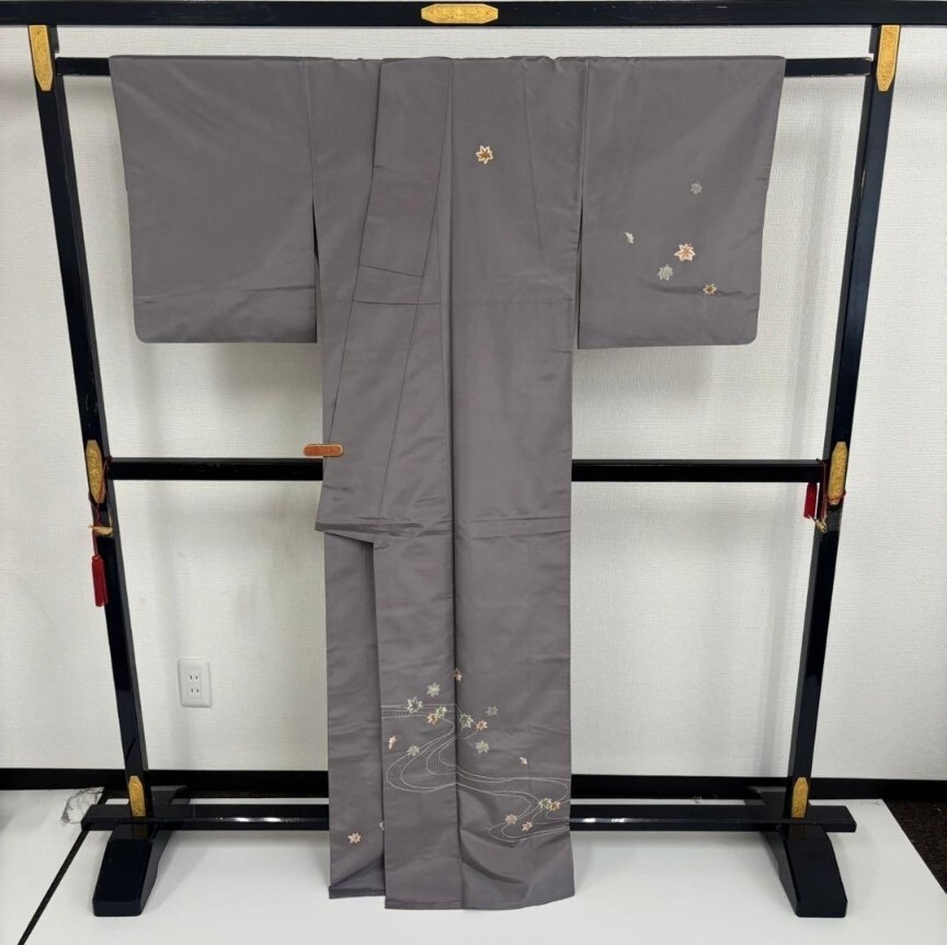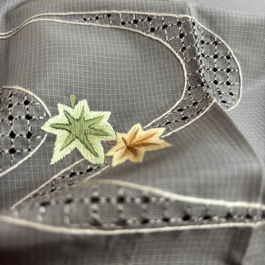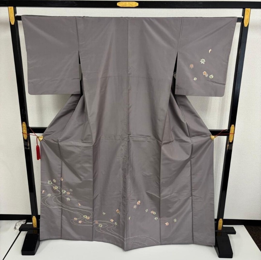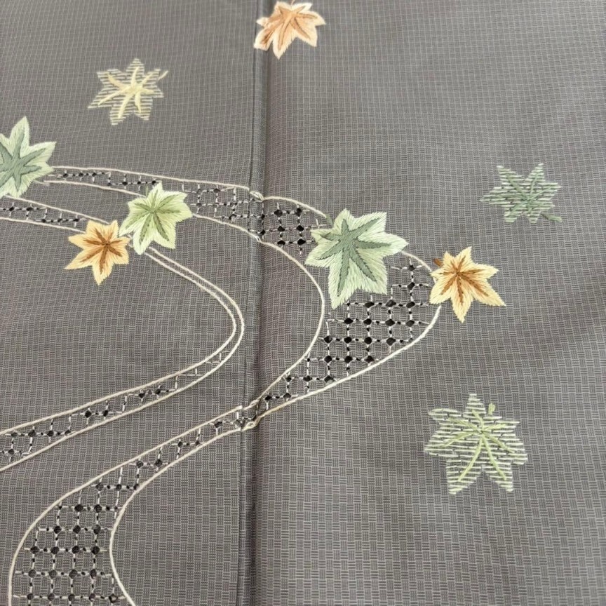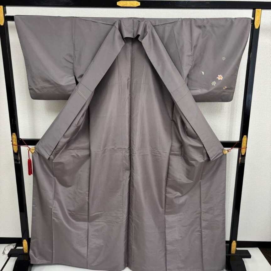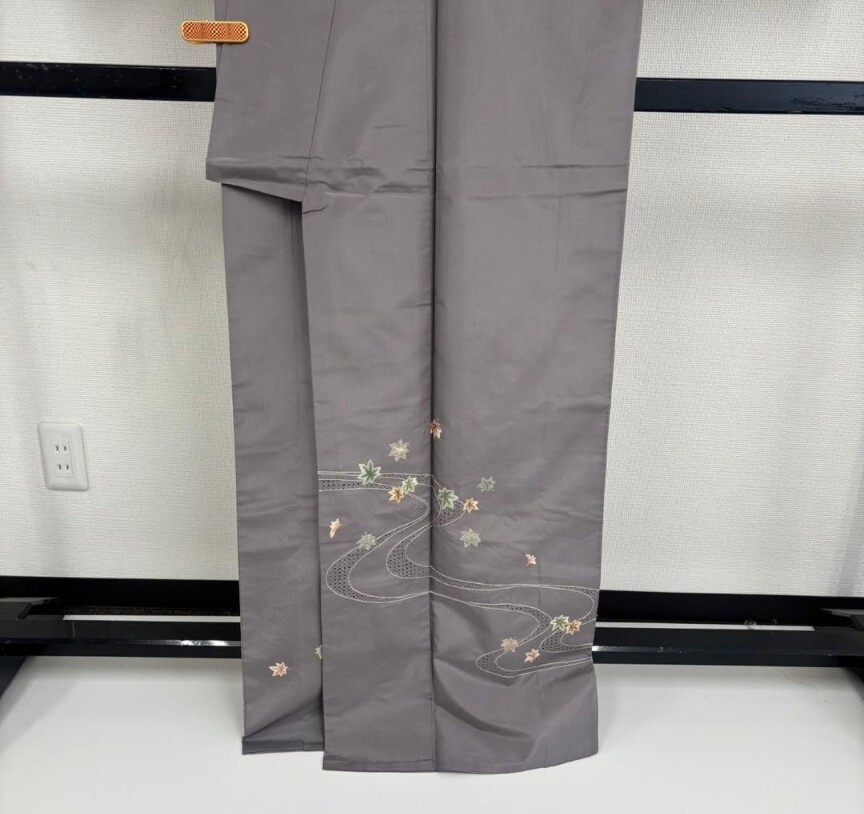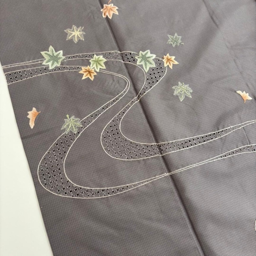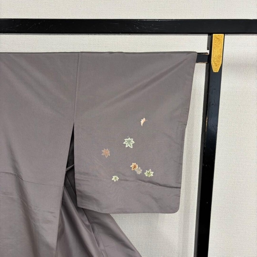【楓】汕頭刺繍 刺繍 染め大島紬 裄65 付け下げ 上品 着物 KU-6696