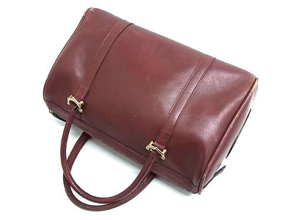 1円 Cartier カルティエ マストライン レザー ミニボストンバッグ ハンドバッグ レディース メンズ ボルドー系 BM9976