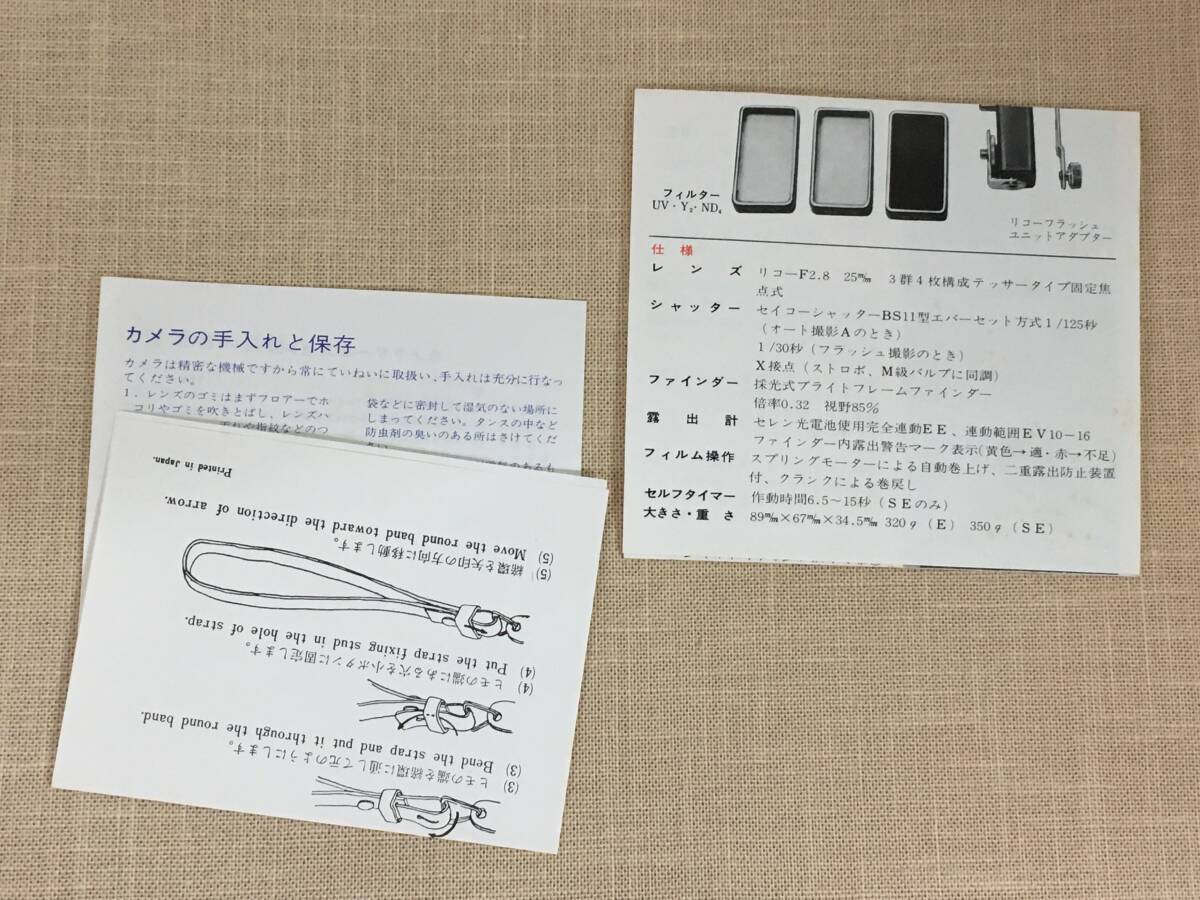 RICOH AUTO HALF 撮影の手引 E・SE共通 取扱説明書 リコー オートハーフ 使用説明書 ※取説のみ