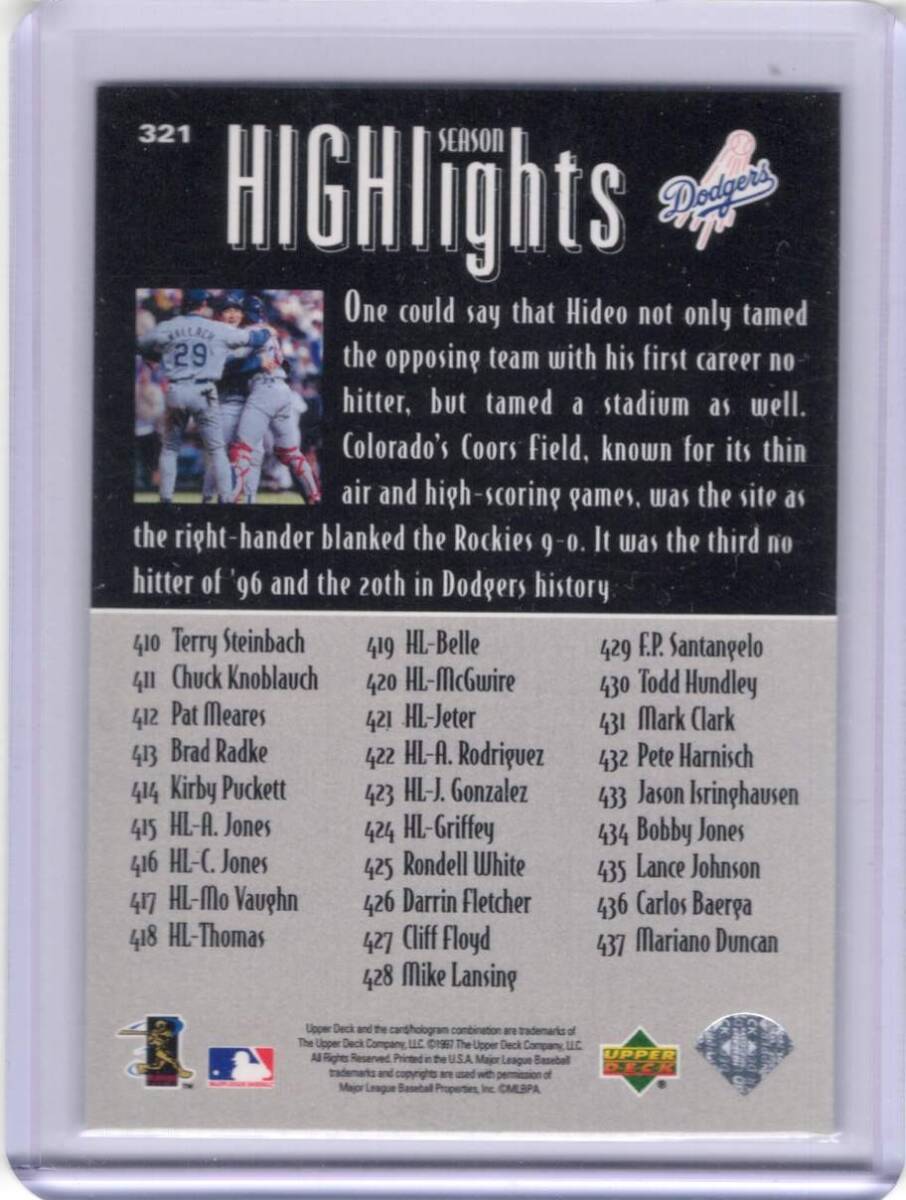 | ★☆野茂英雄 カード Vol.1133 1997UD SEASON HIGHLIGHTS #321☆★ | |