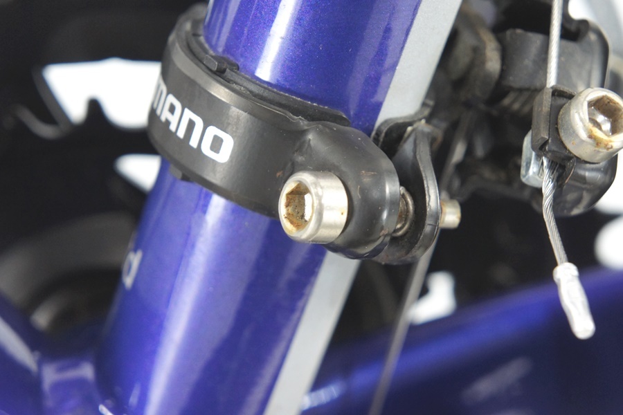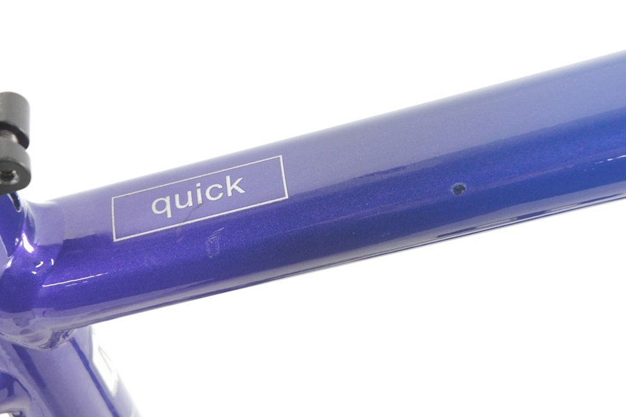 トップチューブんび欠け、左フォーク・左右ブレーキレバー・フロントホイールにキズ、サドル上面先・右クランクアームに小傷、ディレーラー・ステムのネジに小サビ、ハンドル・変速レバー周りに変色がございますが、その他小傷程度で使用感の少ない美品となります。