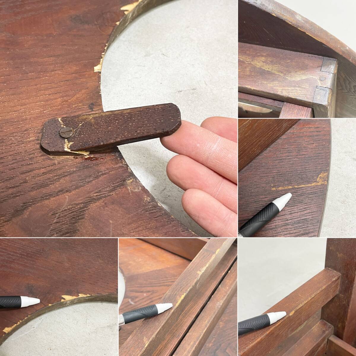 | コンディション | こちらはビンテージのお品物になります。使用と経年に伴う、傷や擦れ、打痕や欠け、色ムラやペイントロス、落としきれない汚れが散見されます。 また、中央天板を支える木材パーツにひび割れが生じており、その影響で固定が緩くなっているため、天板を設置した際に沈みが発生します。重量がある物を置くと木材パーツが破損する恐れがございますので、ご注意ください。 その他、天板に僅かな隙間がございますが、ガタつきやグラつき等の使用に問題となダメージは無く、今後ともビンテージの雰囲気を楽しみがながらお使い頂ける、コンディションを保っております。 ※特筆すべきコンディションは出来るだけ記載させて頂きますが、細かい擦れや傷、汚れ等を完全にお伝えする事は出来ません。画像をご確認の上、ご入札をご検討下さいませ。 ※取扱説明書や保証書等は記載が無い限り付属いたしません。 |