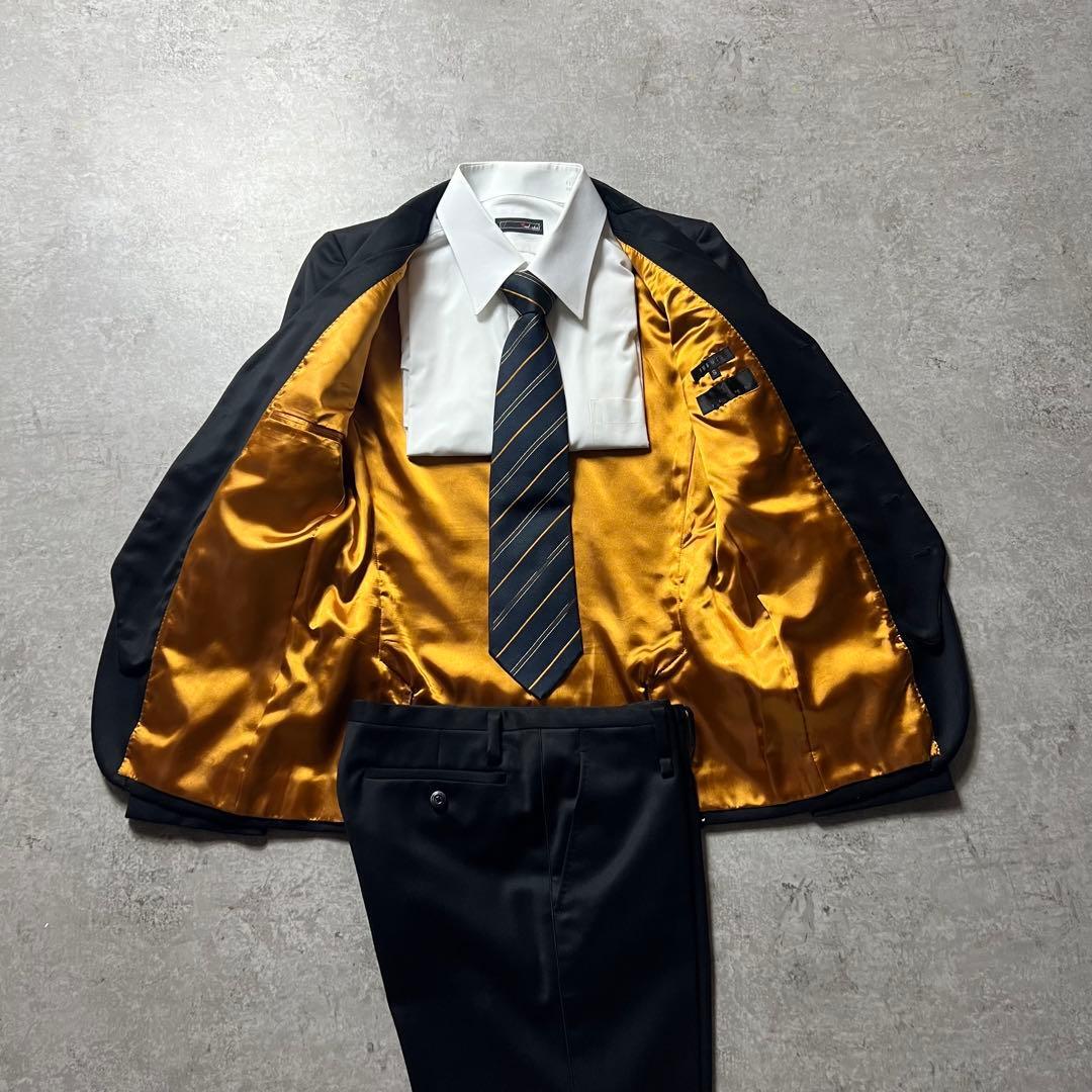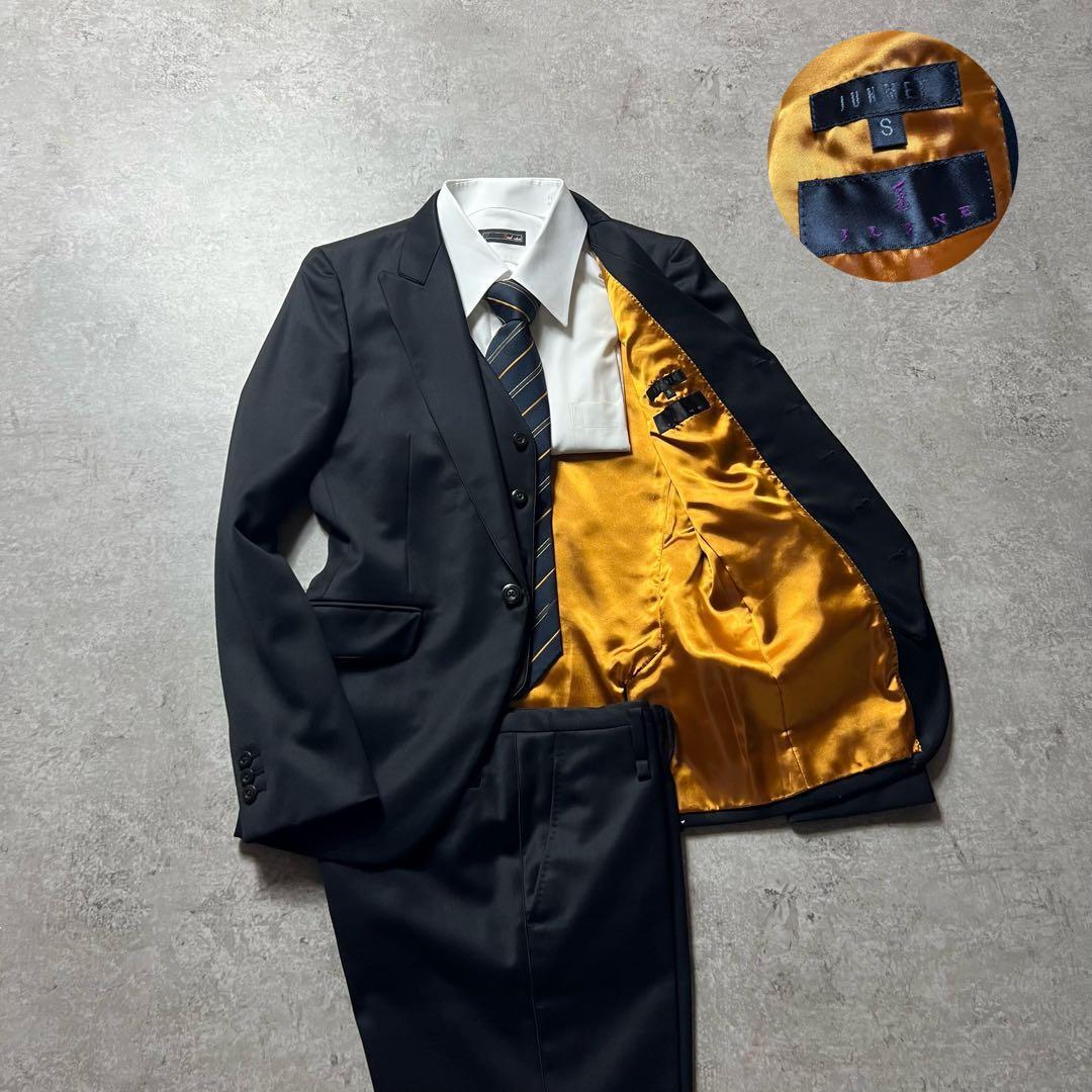 ジュンメン JLINE 裏地ゴールド メンズ セットアップ スーツ ブラック