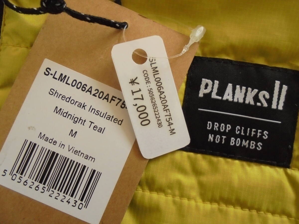 送料無料 新品 プランクス PLANKS 中綿 スキーウエア ジャケット アノラック パーカー M -L ティール スノーボード フード