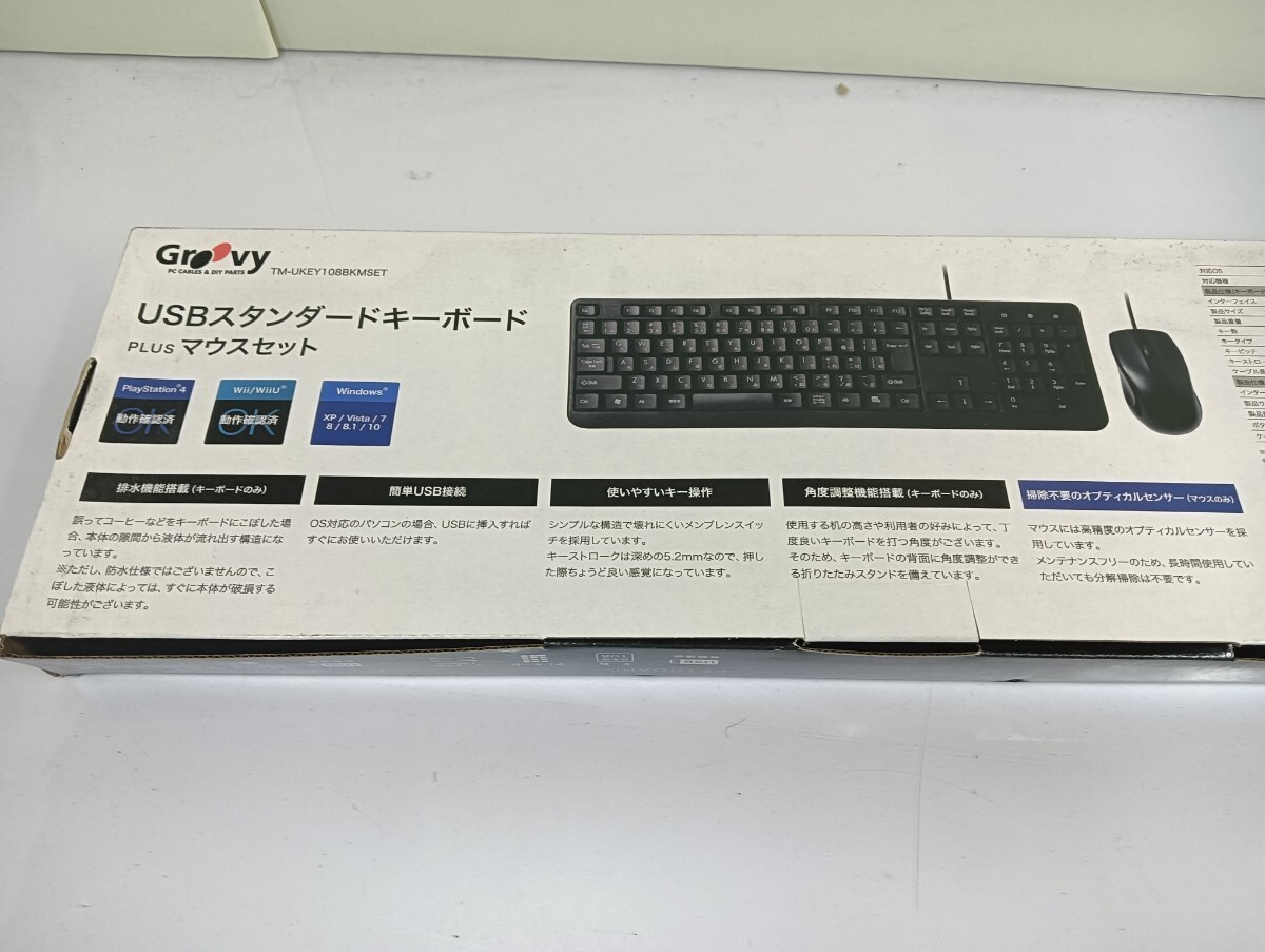 【1円スタート】 Groovy USBキーボード マウスセット TM-UKEY108BKMSET 新品未使用 メンブレン 108キー PS4対応 80サイズ
