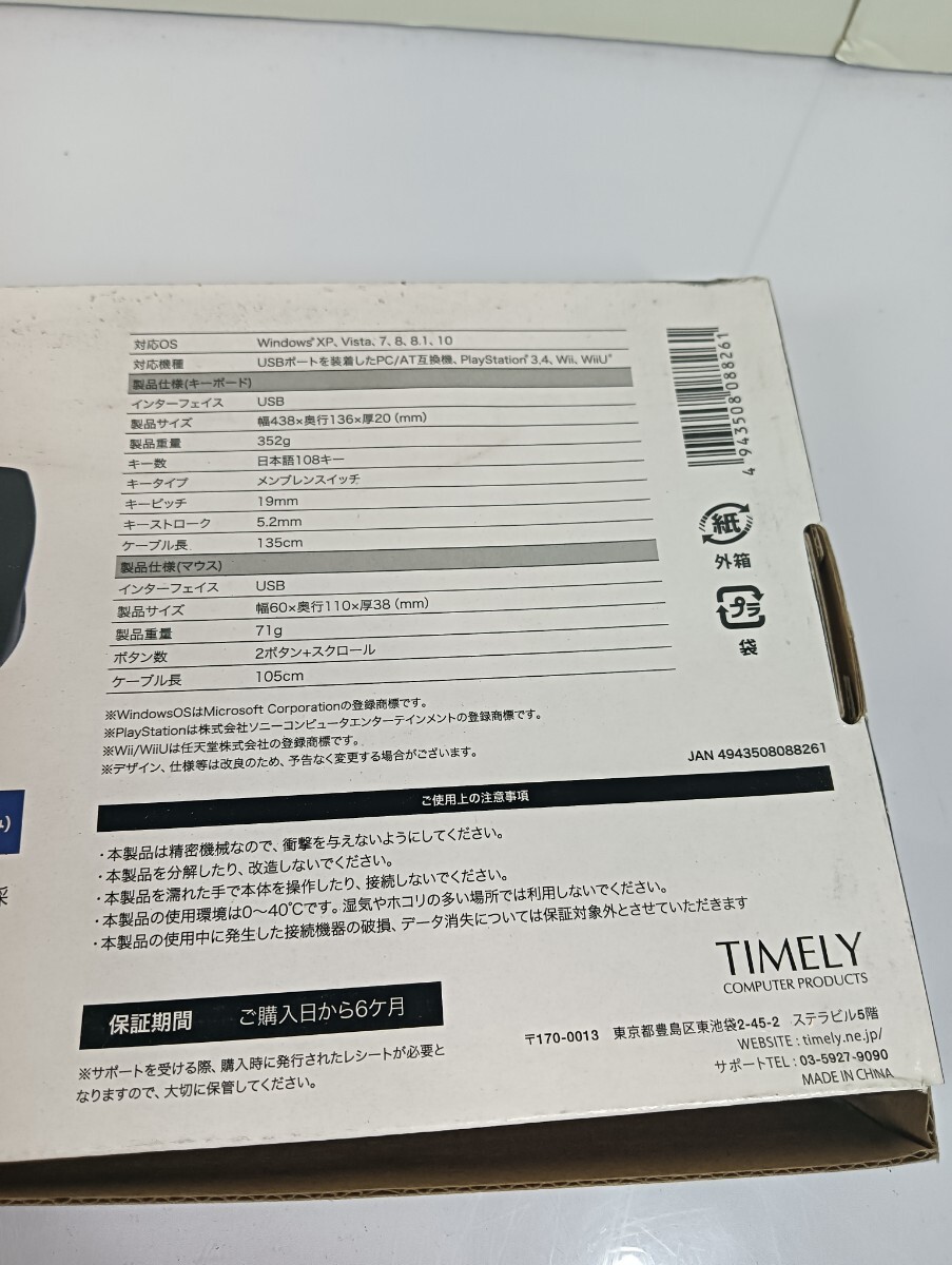 ・仕様の要点:USB接続、日本語108キー(メンブレン)、光学式マウス