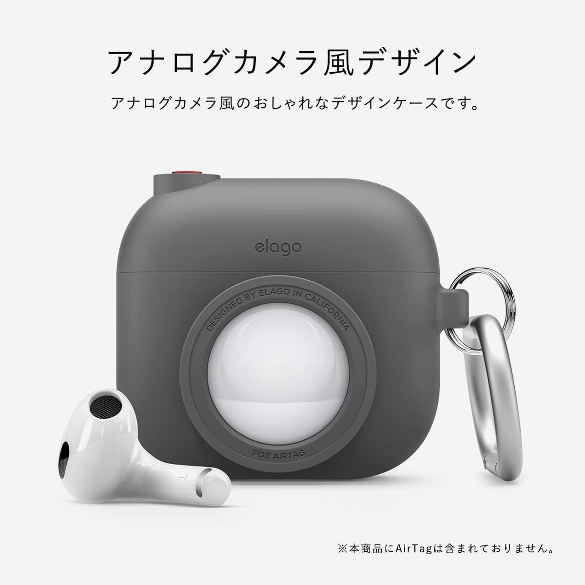 【elago】 AirPods 3 対応 ケース カメラ デザイン カラビナ 付 シリコン カバー AirTag 収納 可 紛失防止 シリコンケース