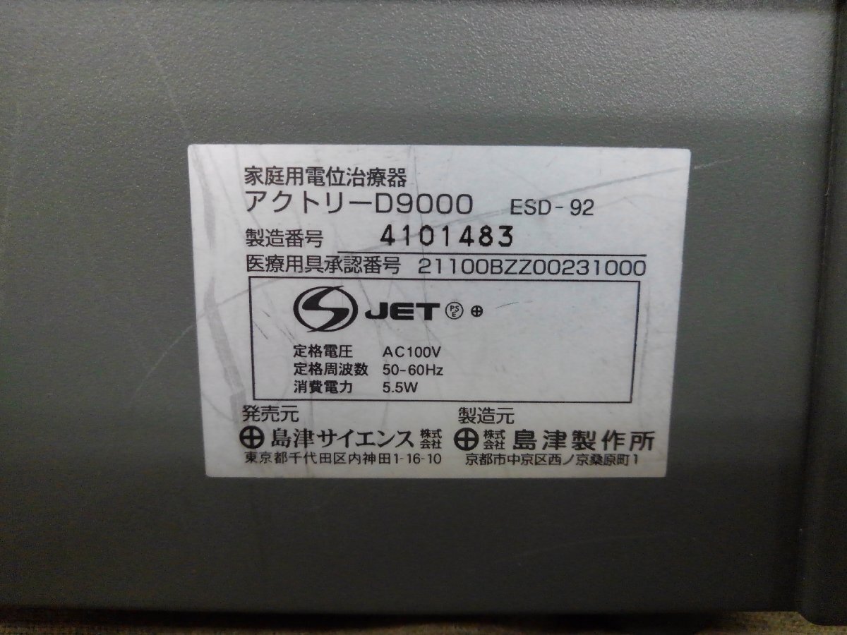 ●★19―010★健康家電 島津サイエンス 島津製作所 家庭用電位治癒器 アクトリーD9000 本体&電床のみ 通電のみ確認/医療家電[100]