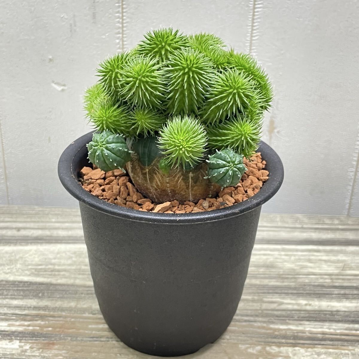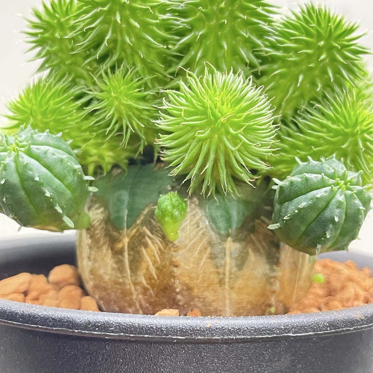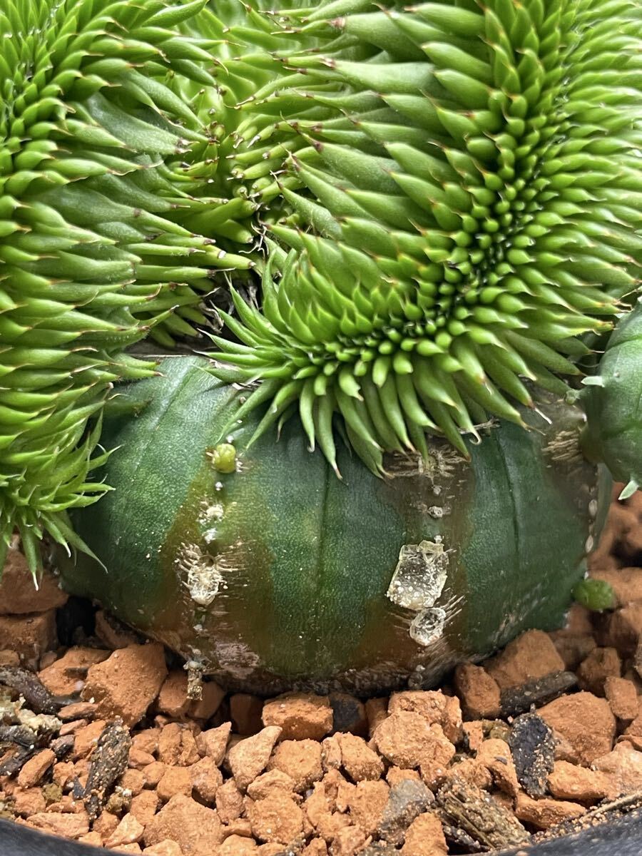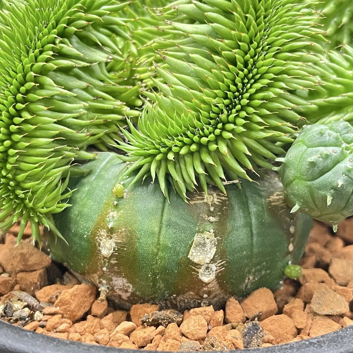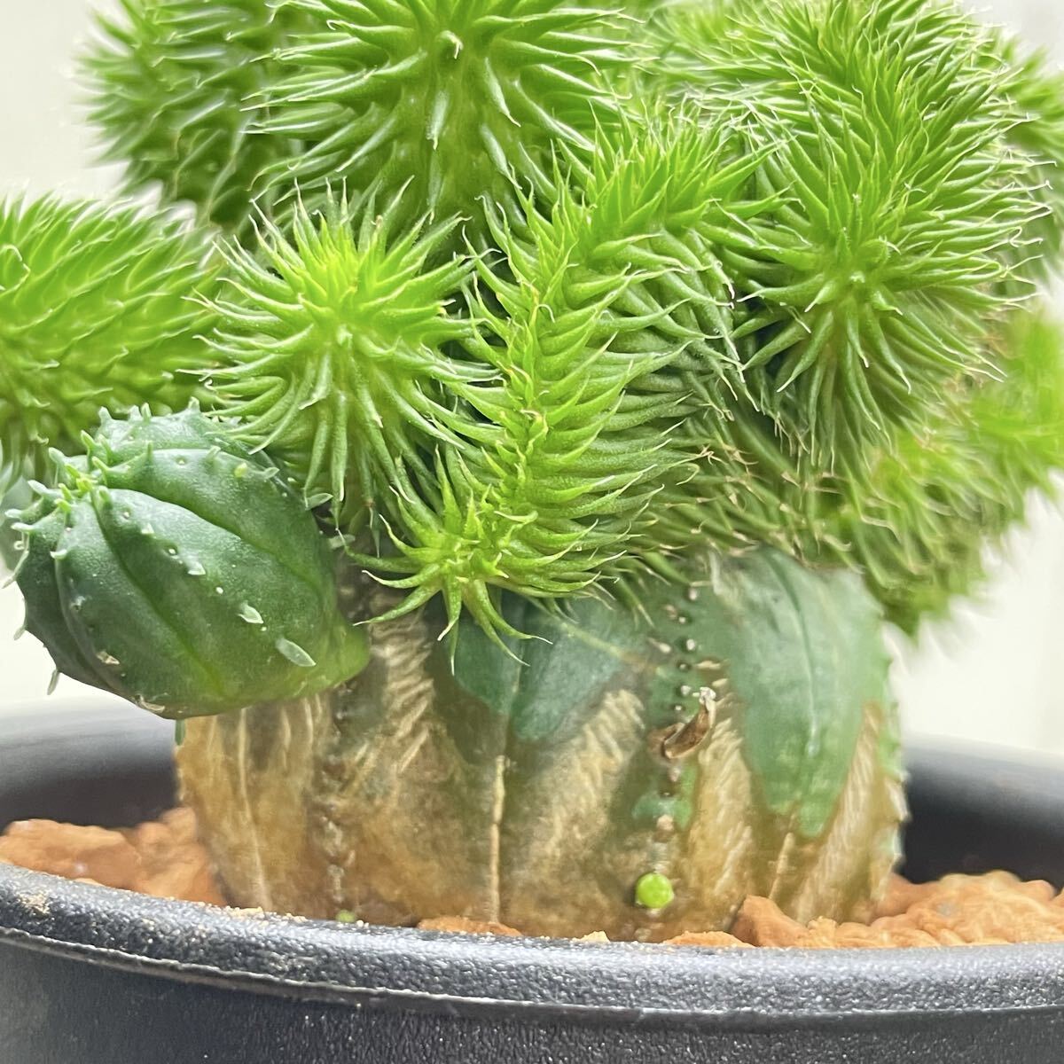 ユーフォルビア・オベサに青虫ジャランを接木した、個性的な一点物です。