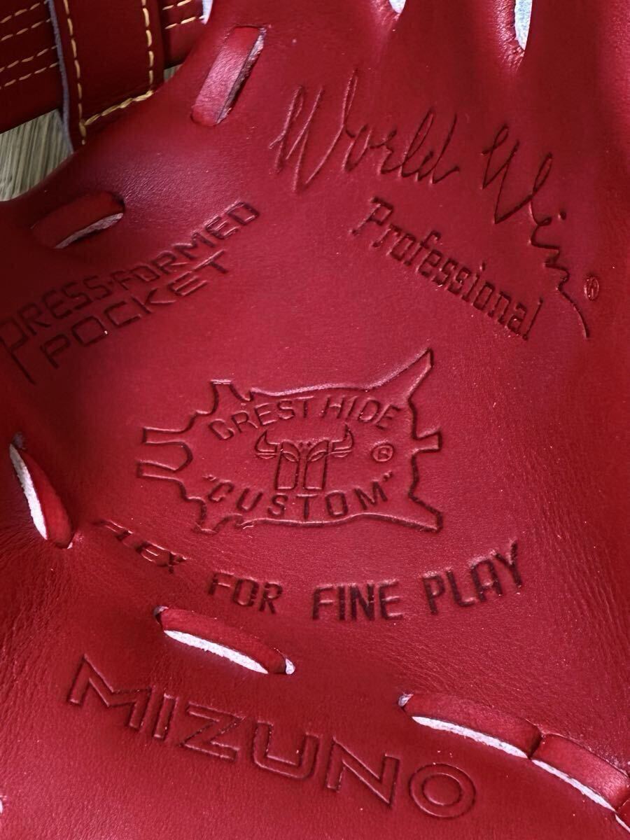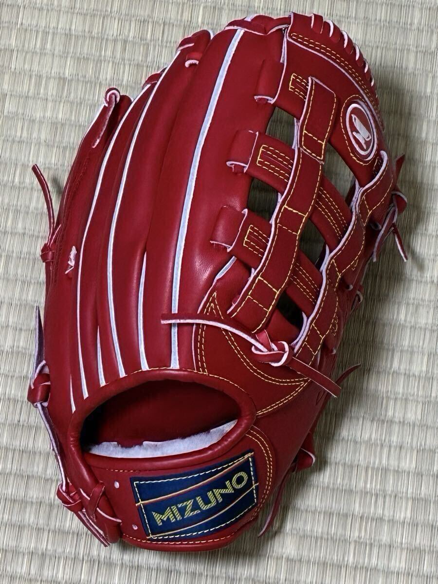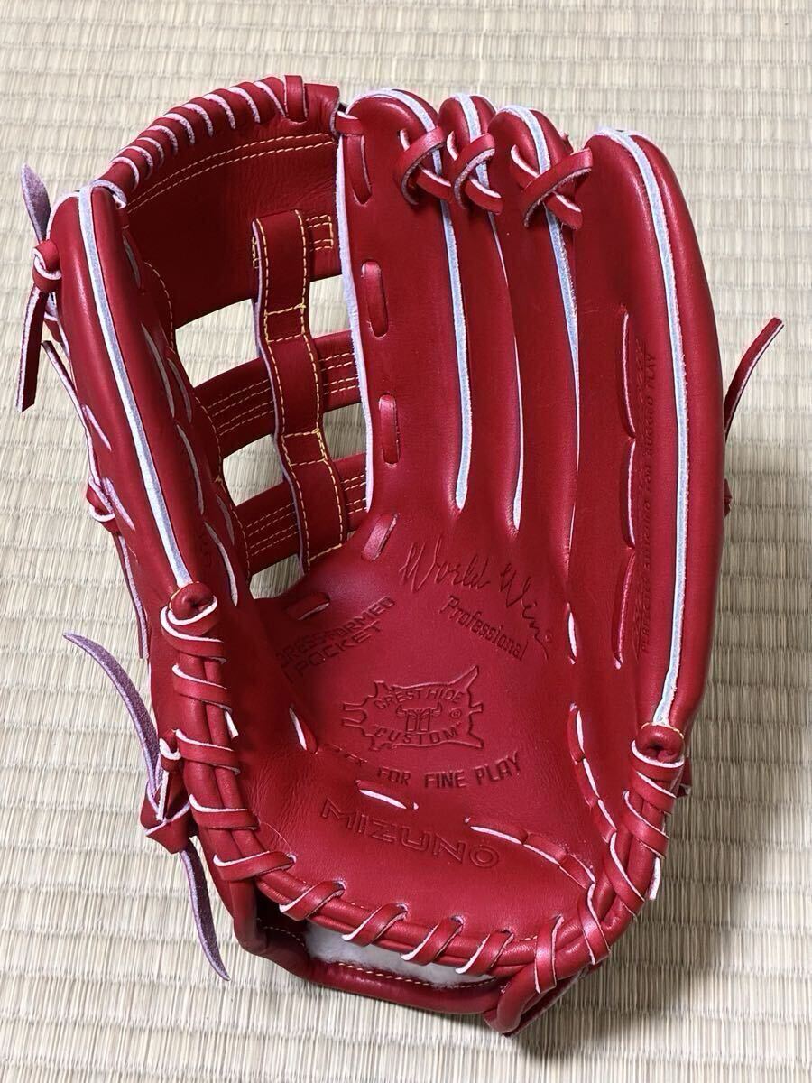 ミズノ公式 硬式用ワールドウィン復刻版 赤カップマーク 外野手用 福本豊モデル/サイズ18N レッド ユニセックス