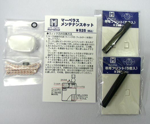 マーベラスオイルライター専用のメンテナンスキットとフリント2個(10粒)のセットです。