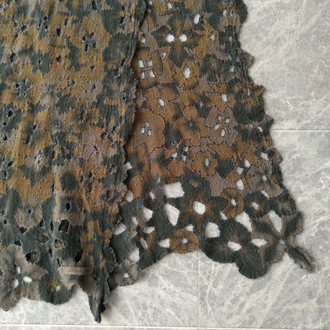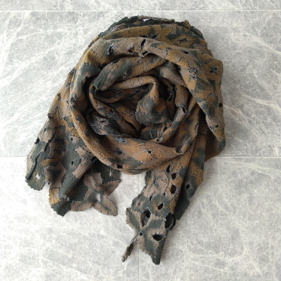 薄手のウール素材に透かし模様を作りフエルト加工した、繊細で華やかなストールです。