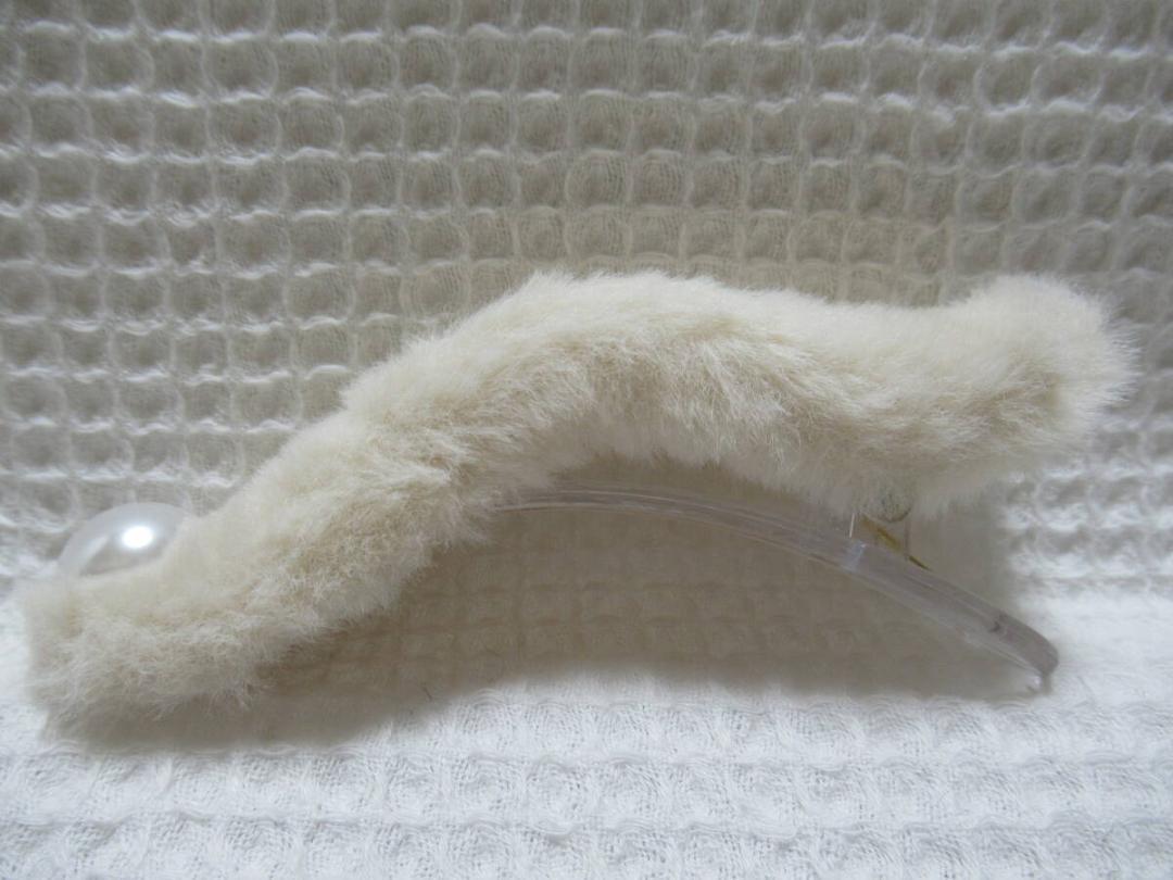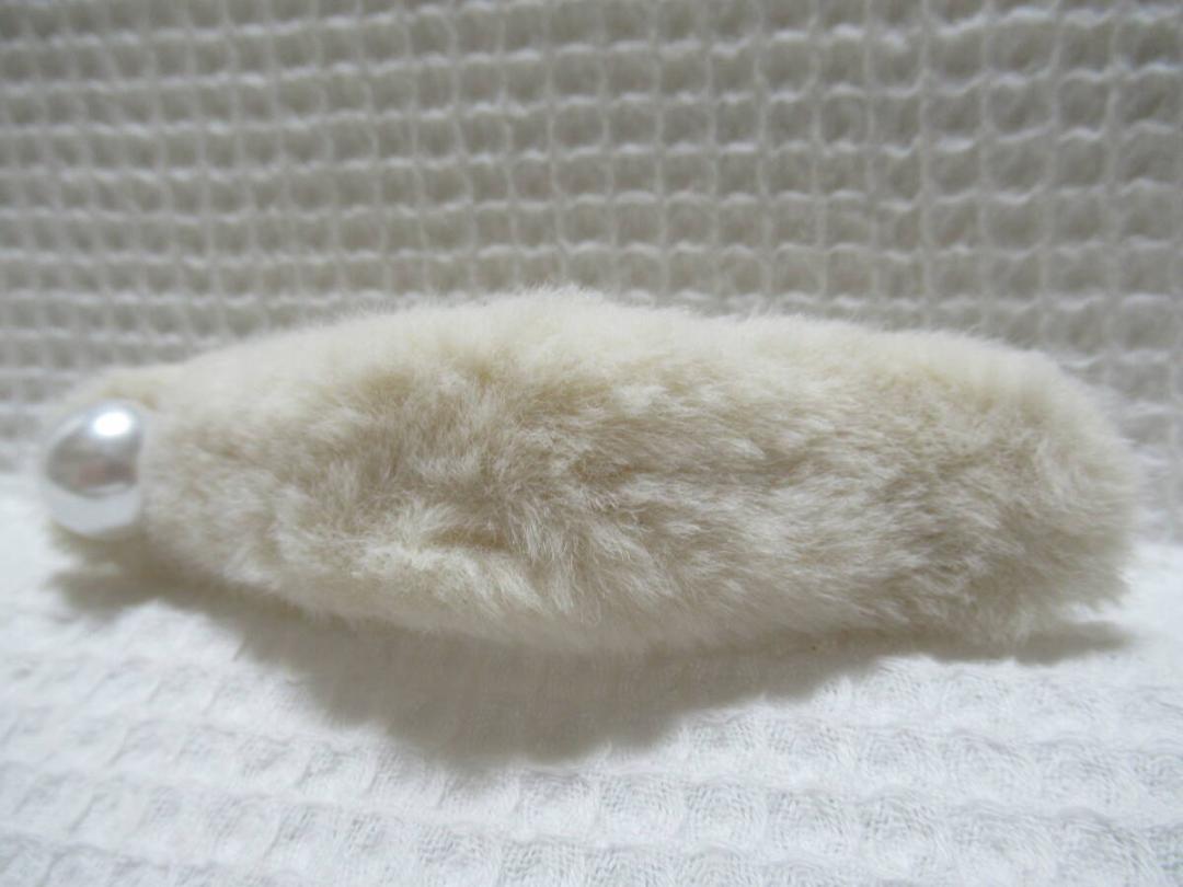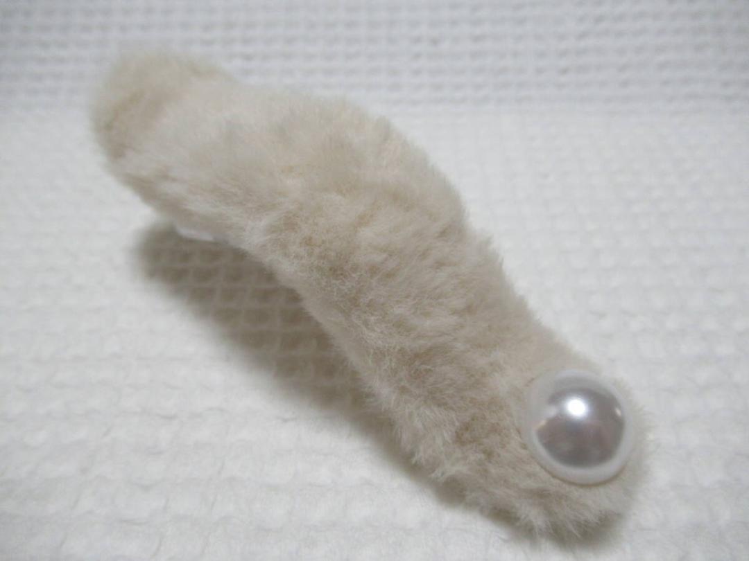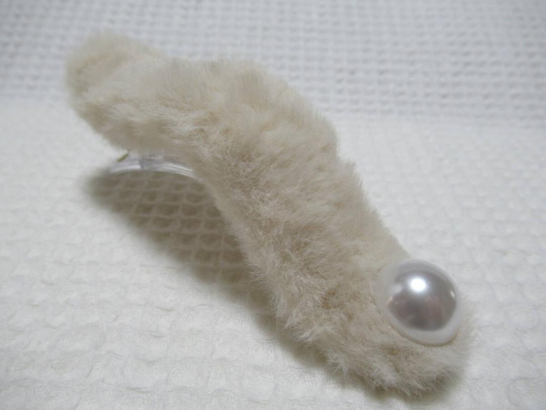 パールの半球型付きアイボリー系色のフェイクファー クリア色のクリップ