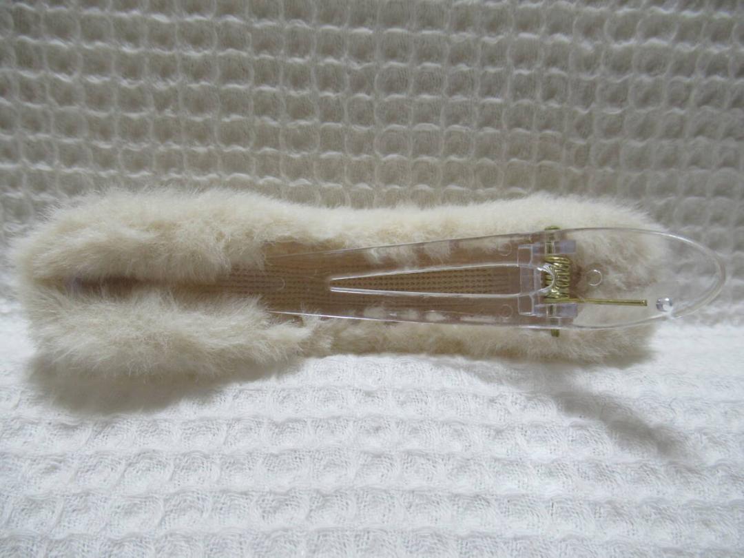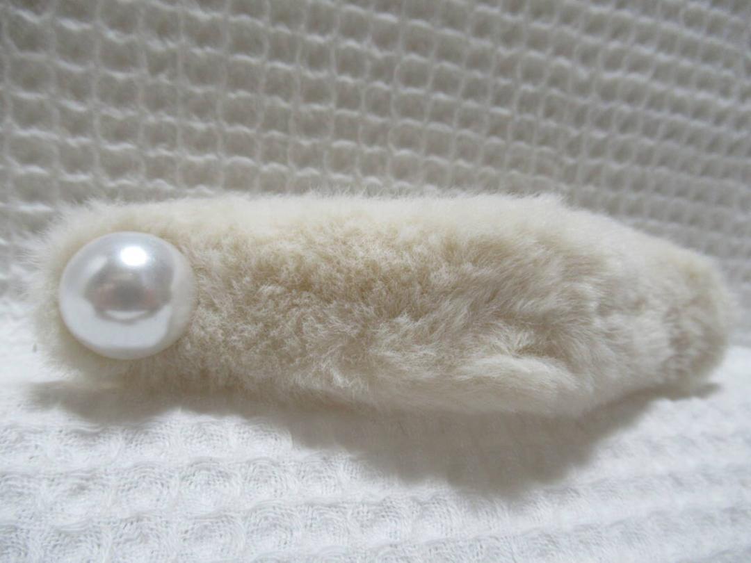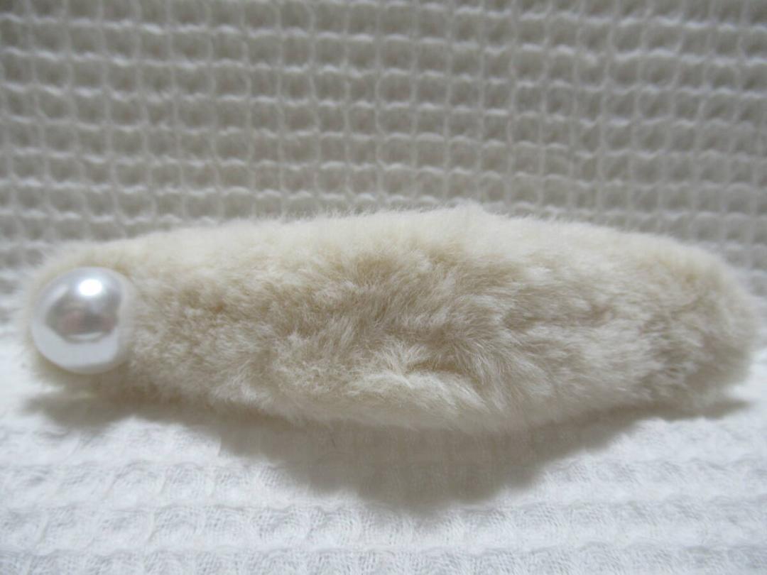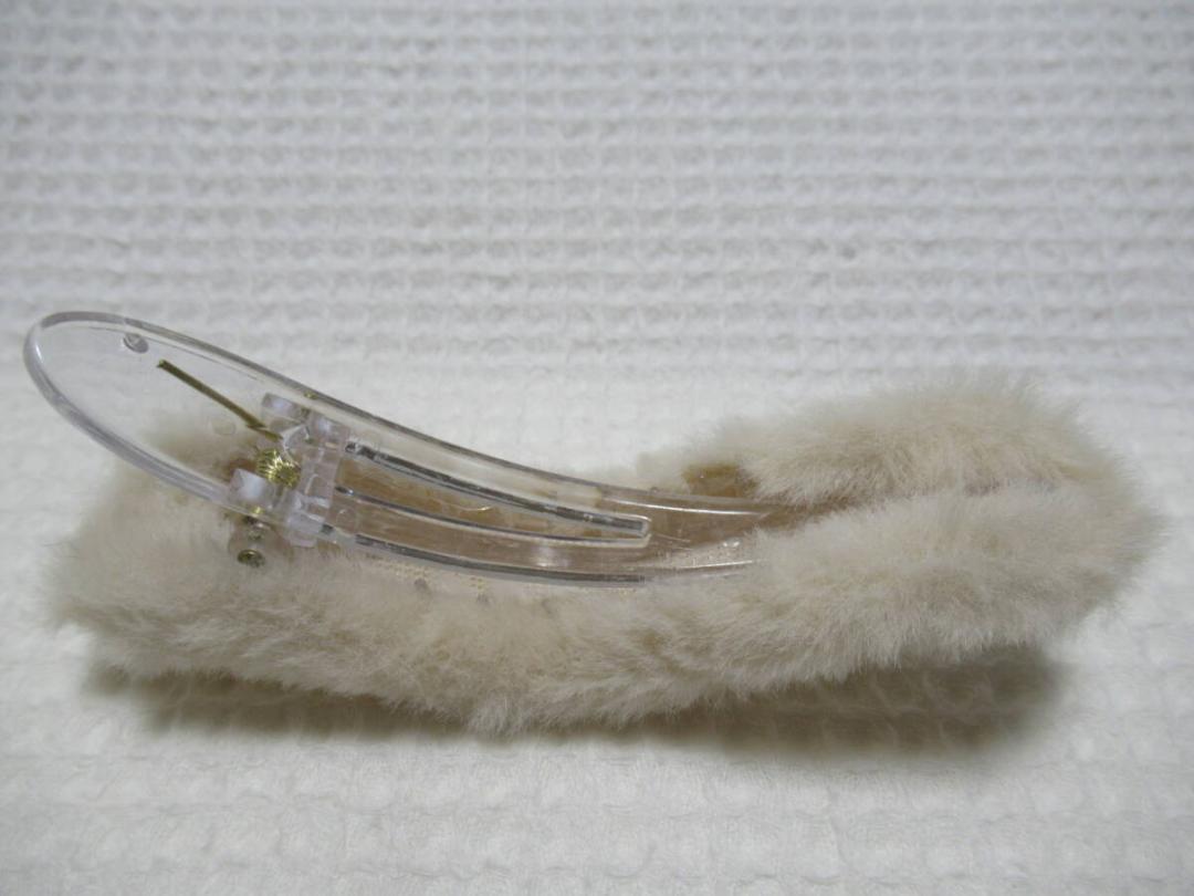 パールの半球型付きアイボリー系色のフェイクファー クリア色のクリップ