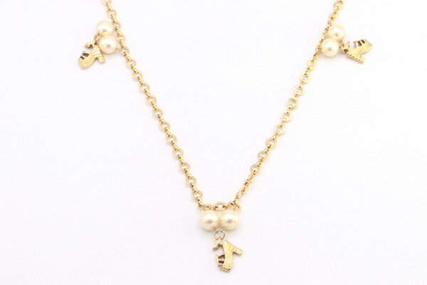 | サイズ | 長さ:約92cm チェーン幅:約0.6cm フェイクパール:約1.0cm玉 シューズモチーフ:約1.3cm×1.4cm 重さ:約37.4g 重さ:約4.5g |