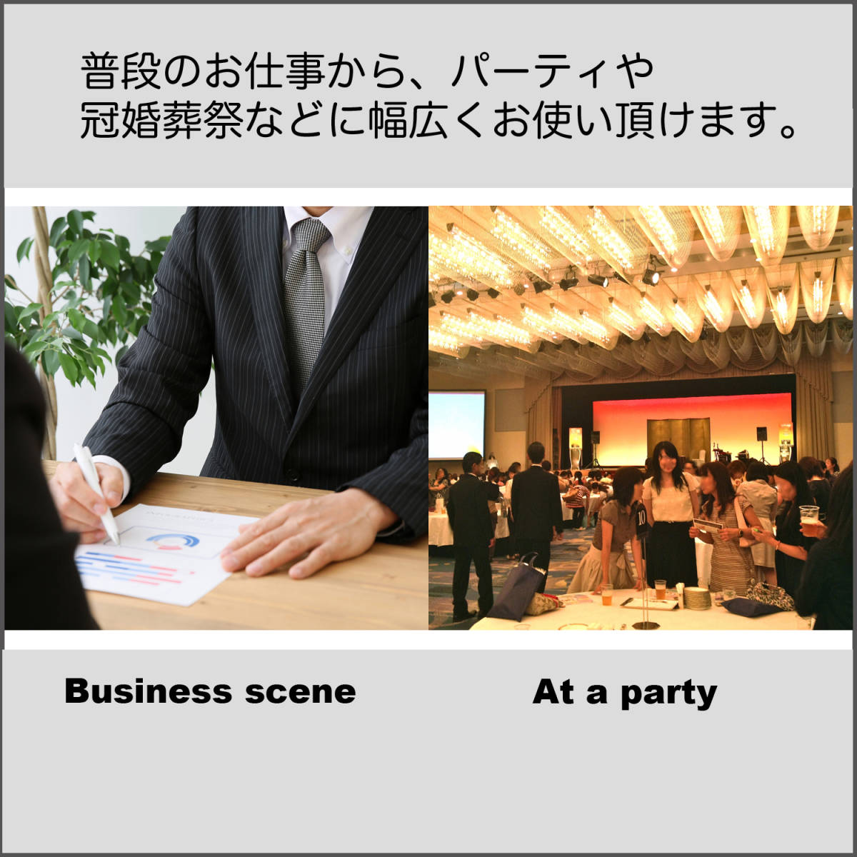 お仕事での普段使いから、パーティー、結婚式などで。