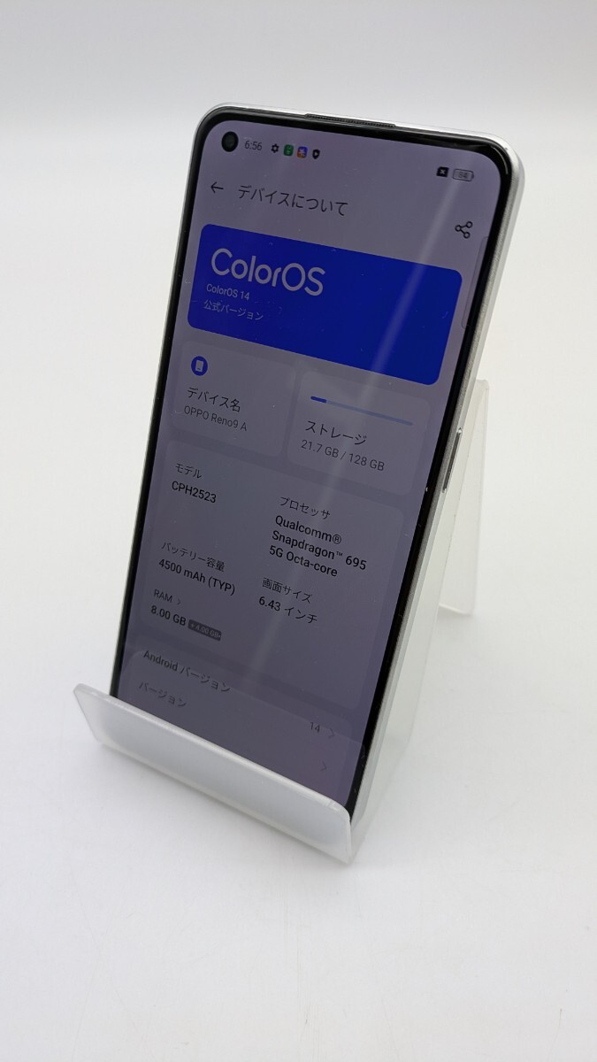 N【500円スタート】Android スマホ OPPO Reno9 A CPH2523 ムーンホワイト 8GB/128GB 判定 楽天モバイル○ 本体のみ 初期化済