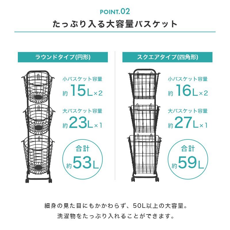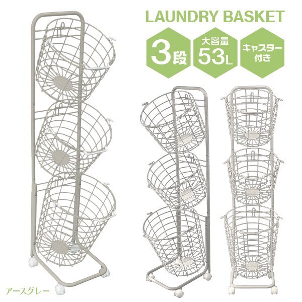 こちらの商品は幅約37cmのバスケットを3つ縦に並べることが可能。 デッドスペースを活用することで物が多くなりがちな洗濯機まわりも無駄なくすっきり。 狭くなりがちなスペースを有効に活用することができます。 3つのバスケットは取り外しも可能で、持ち手があるのでベランダに運ぶ時なども便利にお使いいただけます。 キャスター付きで、ラックごとの移動もスムーズです。 ランドリー以外にキッチンの食品ストッカー、リビングの雑貨入れ、おもちゃ収納も使えます! 【商品仕様】 ・カラー:アースグレー(ラウンド型) ・サイズ:(約)幅37.5×奥行き37×高さ123cm ・バスケット内寸 小:(約)幅30×奥行き30×高さ25.5cm 大:(約)幅32.5×奥行き32.5×高さ36.5cm ・重量:(約)3.6kg ・容量:(約)53L(小15L×2、大23L) ・バスケット耐荷重:(約)15kg ・素材:スチール(粉体塗装)、他 【注意事項】 ・お客様組み立てになります。(プラスドライバーはお客様でご準備ください。) ・スチール製の為、浴室ではご使用いただけません。 |