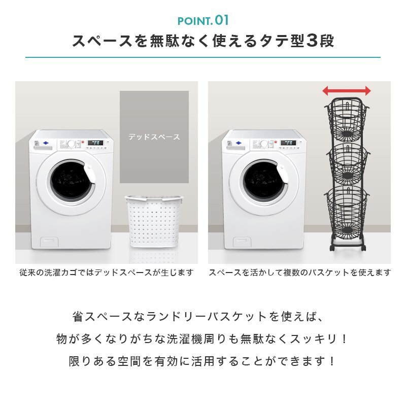ランドリースペースを無駄なく使える縦置き3段タイプ!