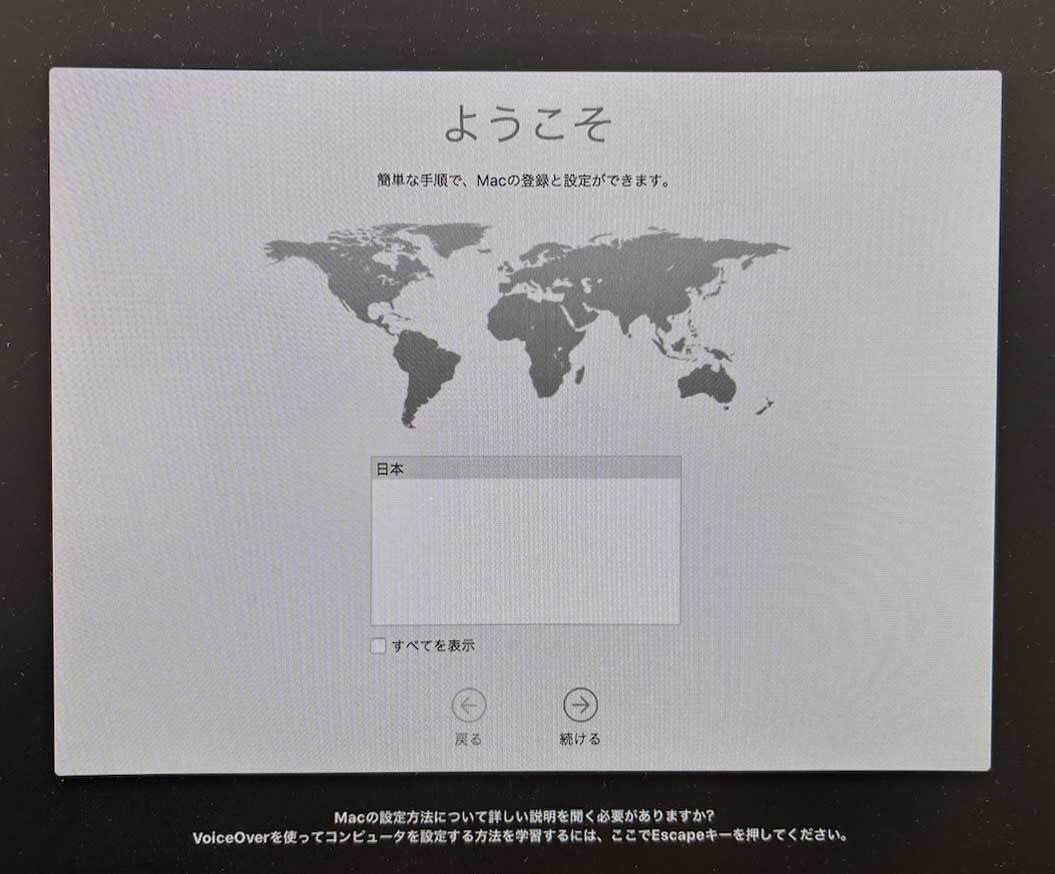 一通りの動作を確認し、初期化して、現在 OSX 10.12.6 Sierra が初期設定前の状態(ようこそ の画面)でインストールしてあります。