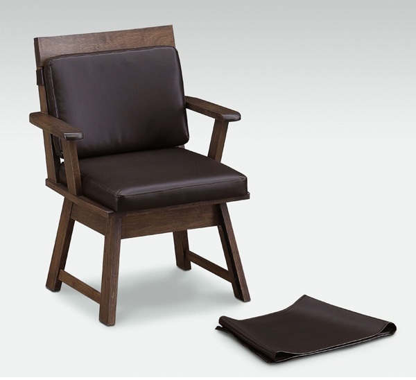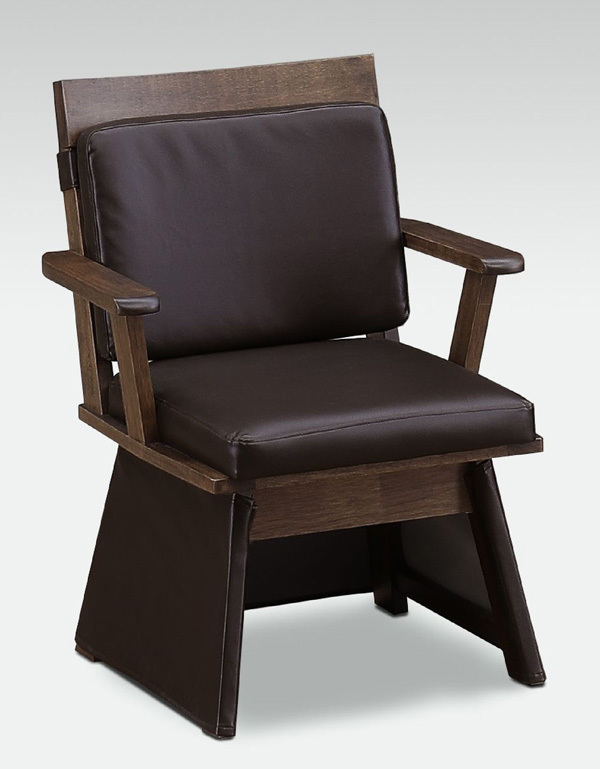 木製ダイニングチェアー 食堂椅子肘掛付チェアハイタイプこたつ用 ブラウン色