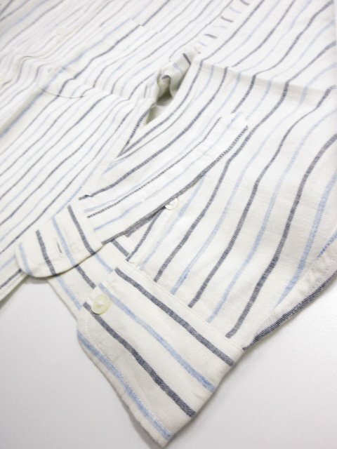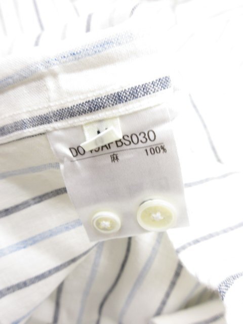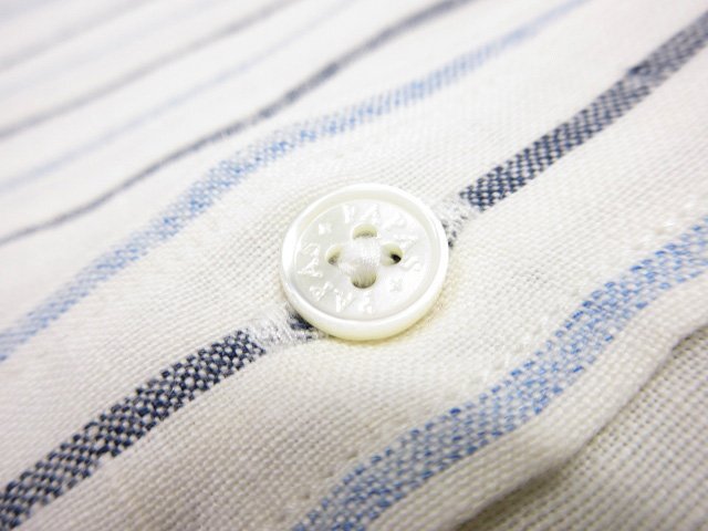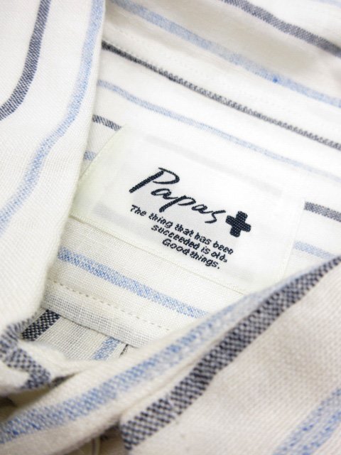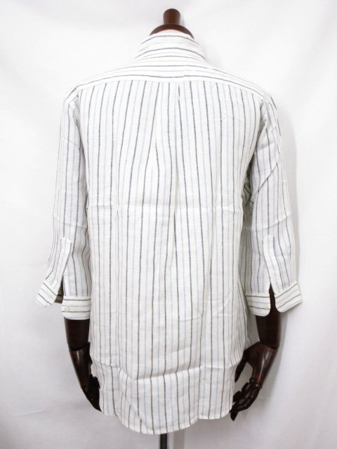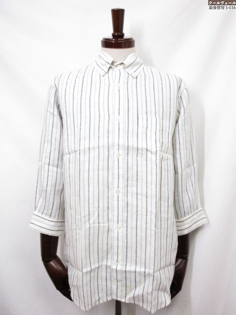 【Papas+ パパスプラス】 リネン100% ボタンダウン七分袖シャツ (メンズ) sizeM オフホワイト ストライプ柄 D049AFBS030 ◇33MK6377◇