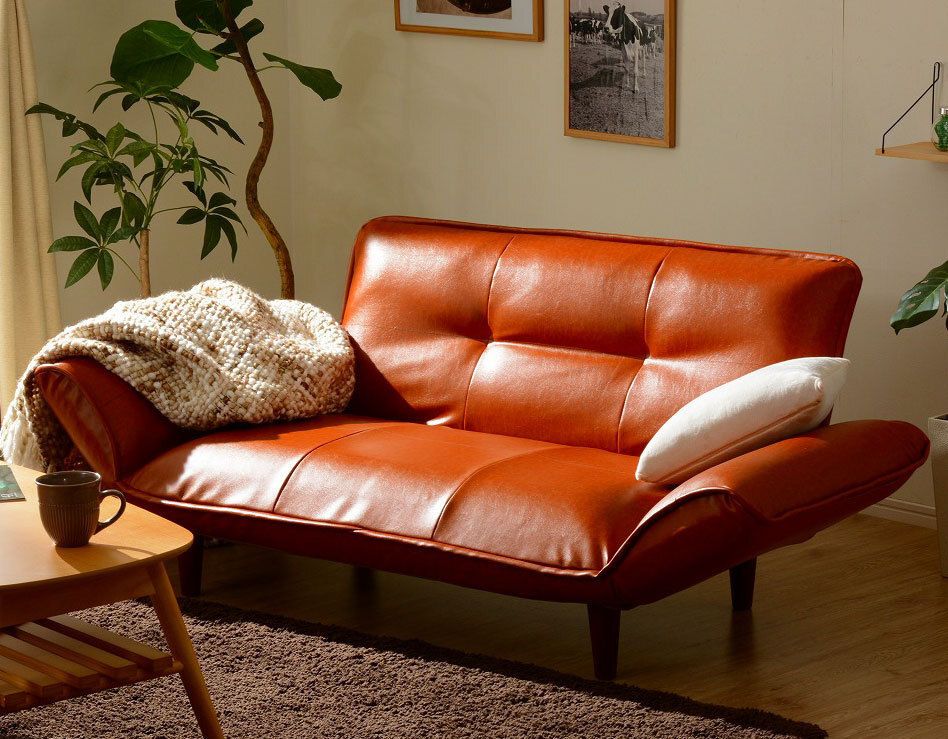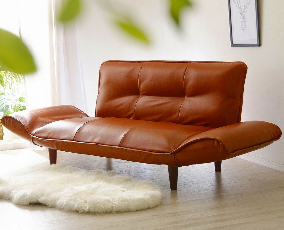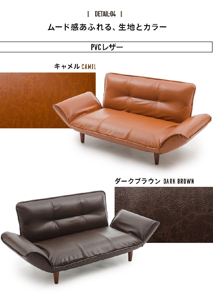 日本製 送料無料 合成皮革 レザー 2人掛け リクライニング ローソファ 和楽カウチ | |||||