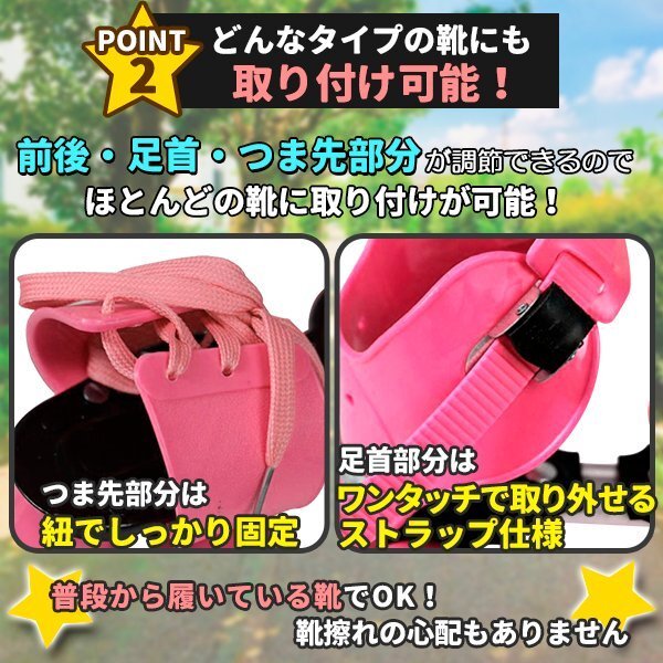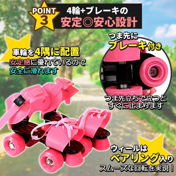 ローラースケート ローラーシューズ クワッドスケートコロコロ フリーサイズ 19cmから25cm ピンク