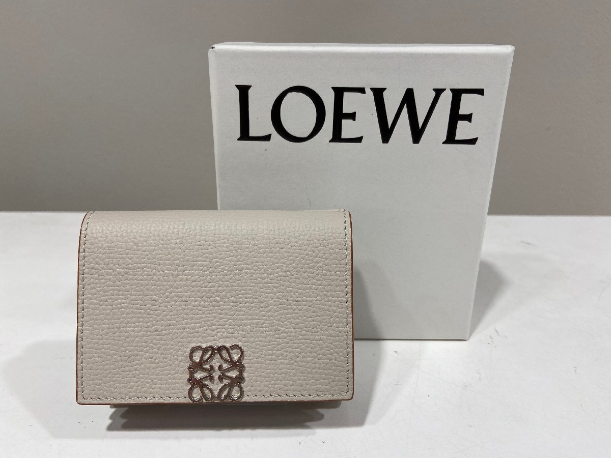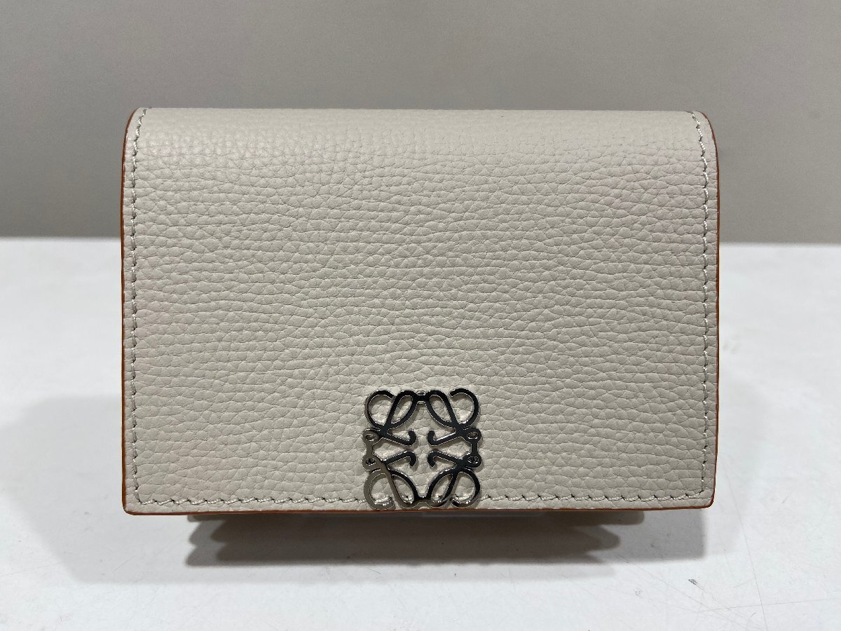 【LOEWE】 ロエベ 《アナグラム/トライフォールド》 折財布 三つ折りタイプ アイボリーベージュ系カラー レザー素材 SY02-EJ2