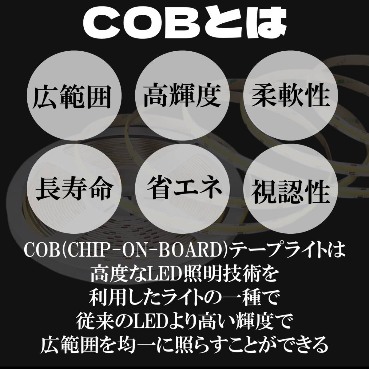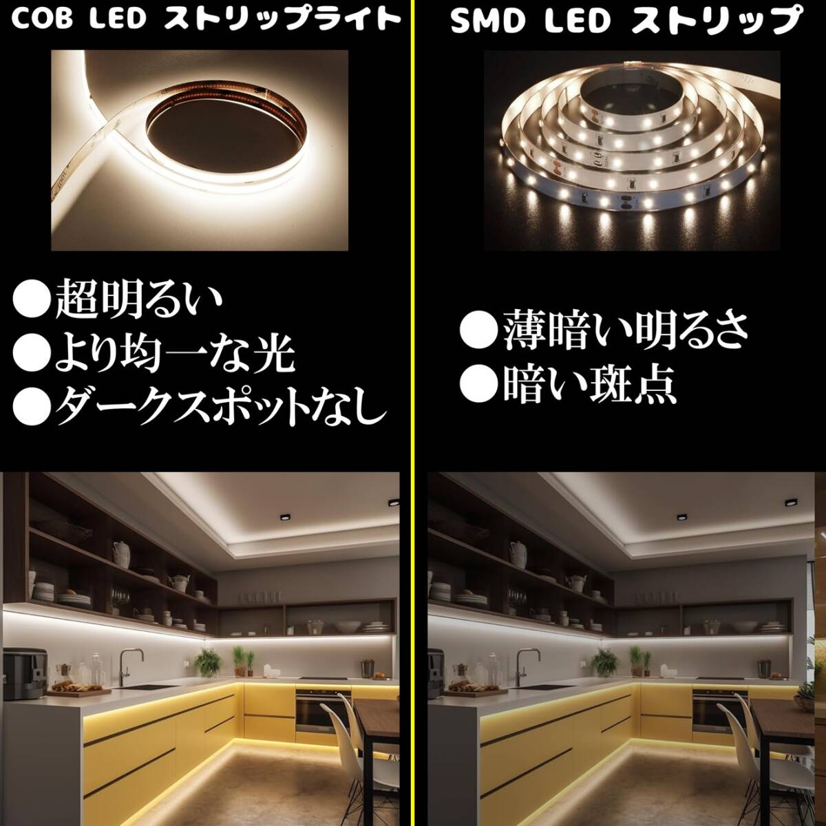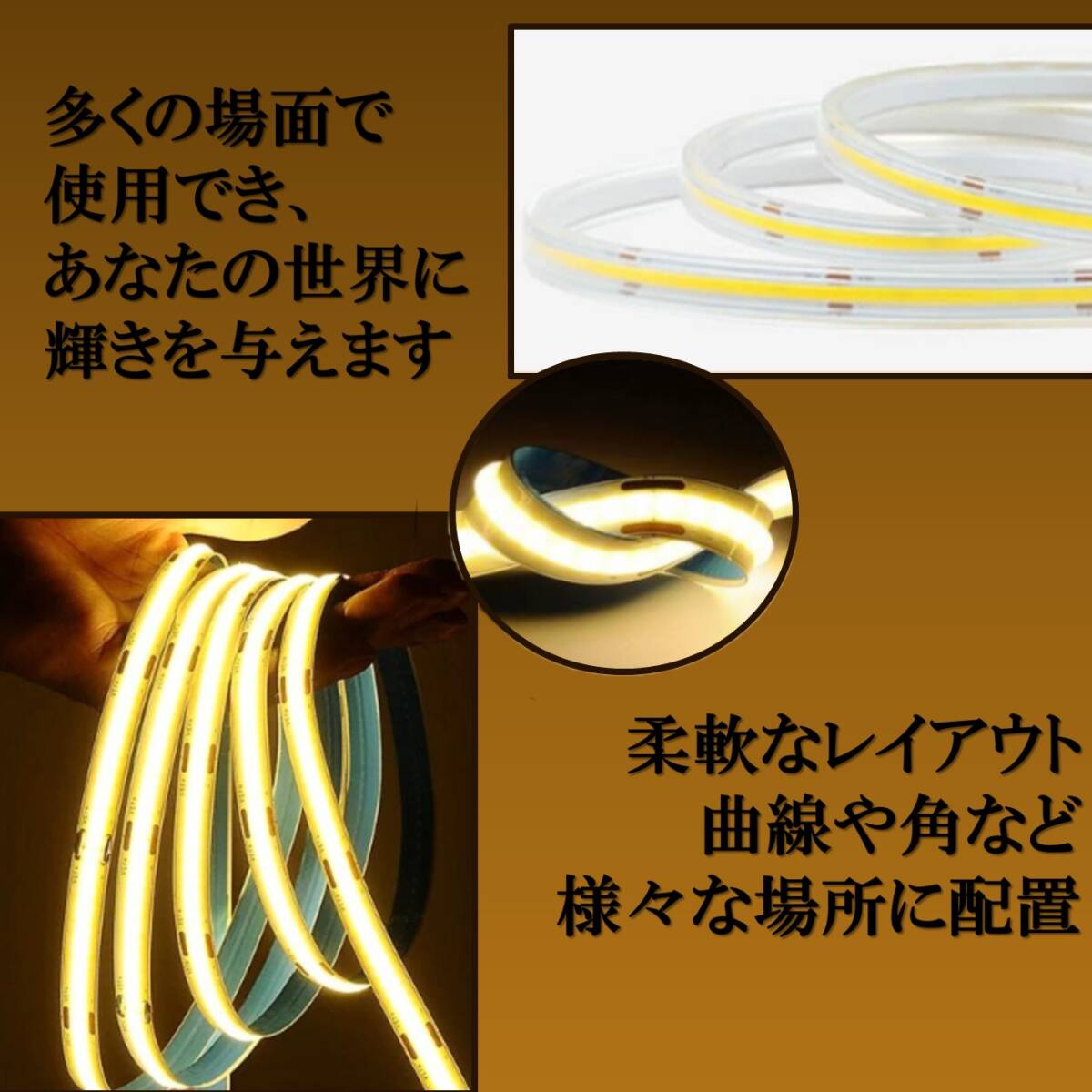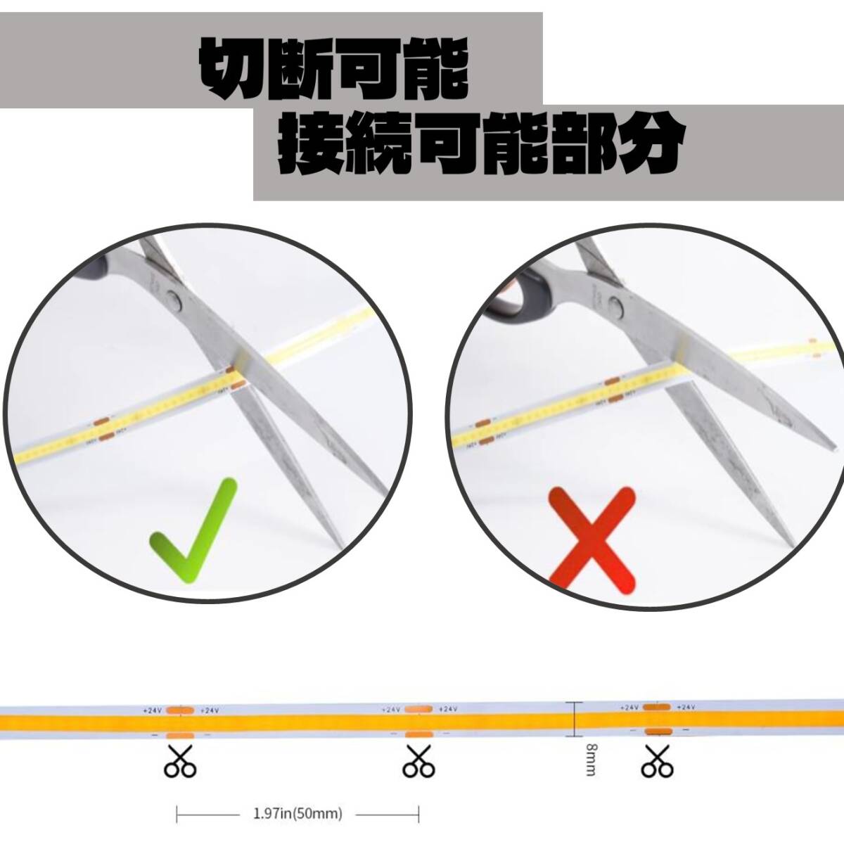 COB LED テープライト高輝度 高密度 10m 24V 320LEDs/m 電球色4000K 幅8mm ストリップライト 180°発光 間接照明 インテリア