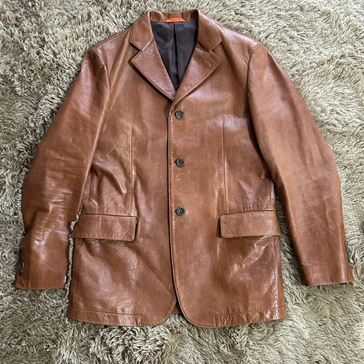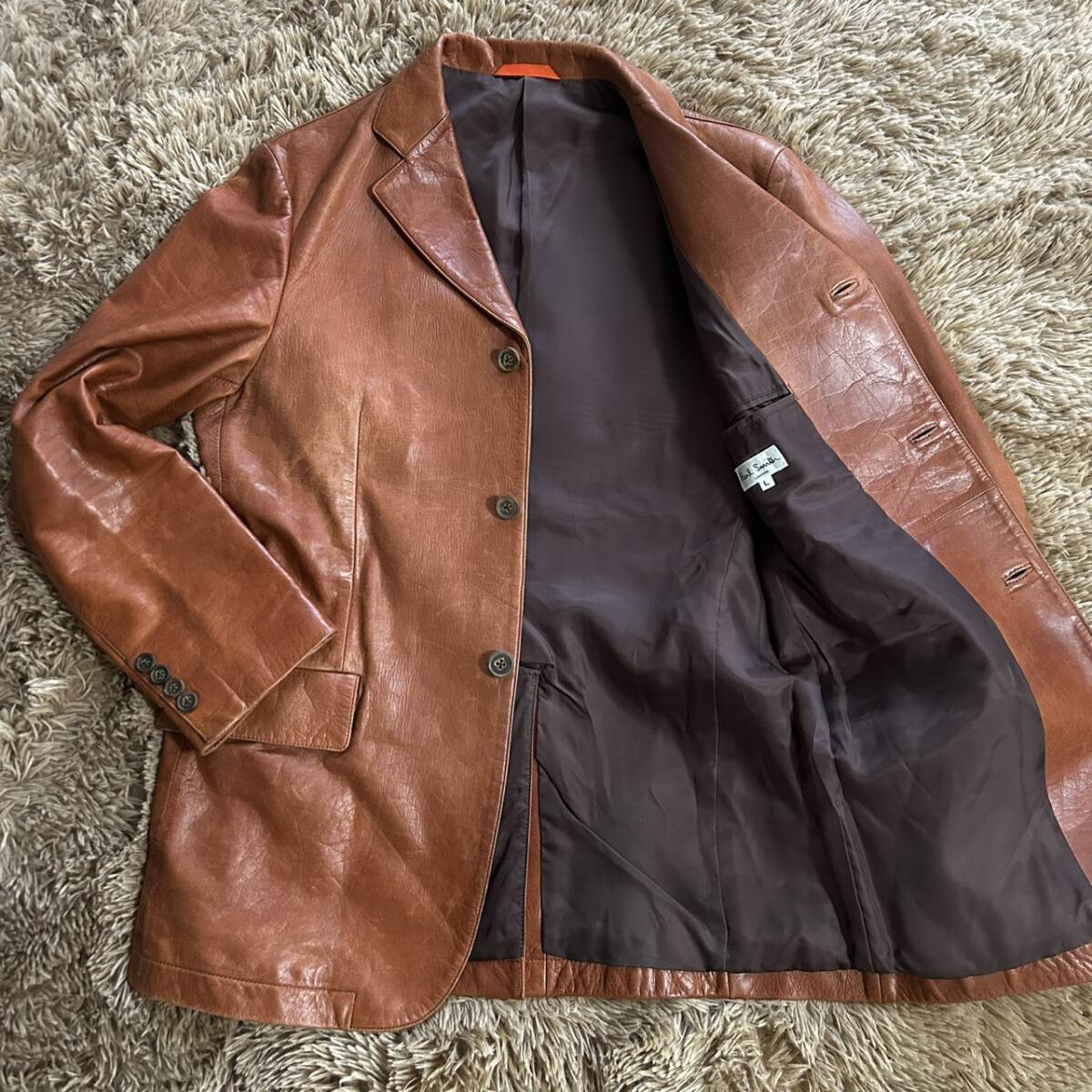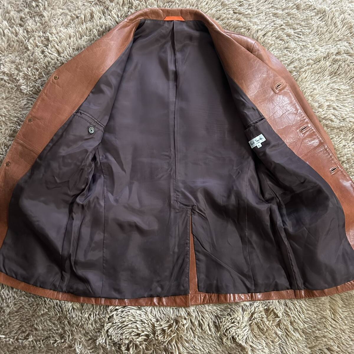 最高級 希少カラー●Paul Smith ポールスミス●レザー テーラードジャケット ラムレザー メンズ バーガンディ 羊革 ブラウン ML