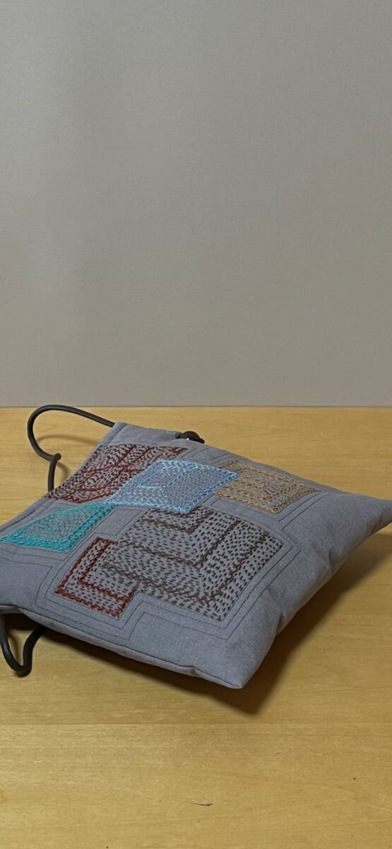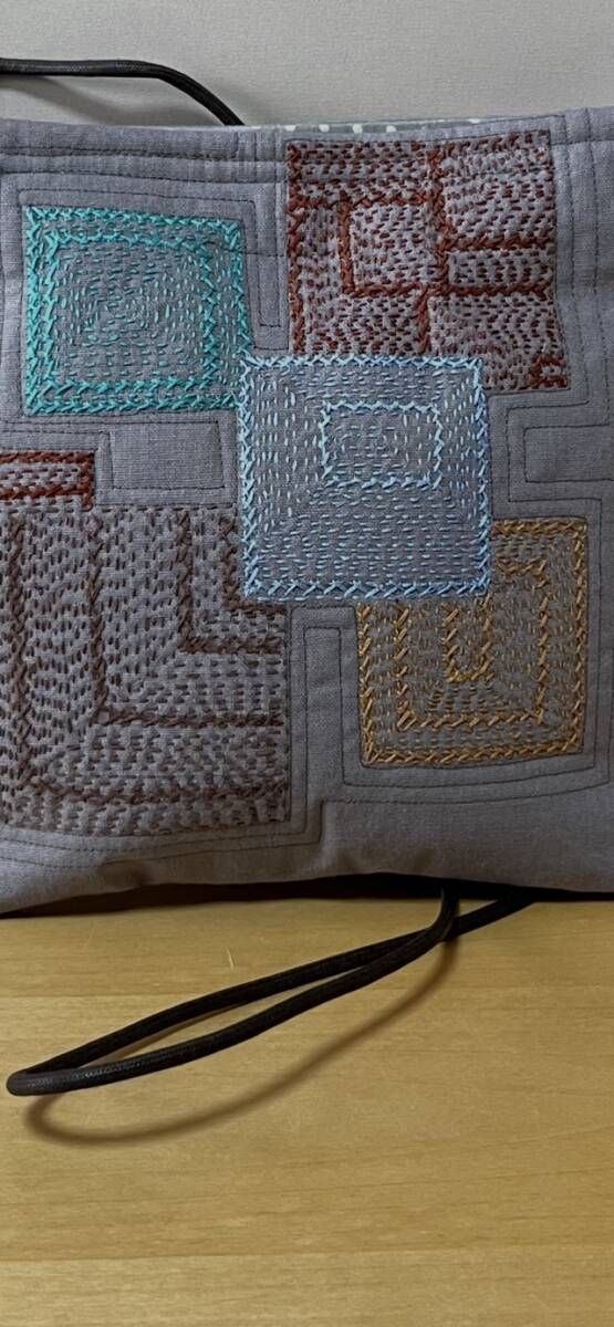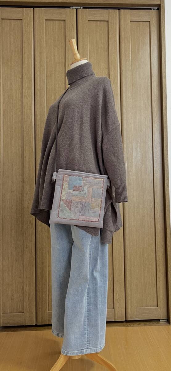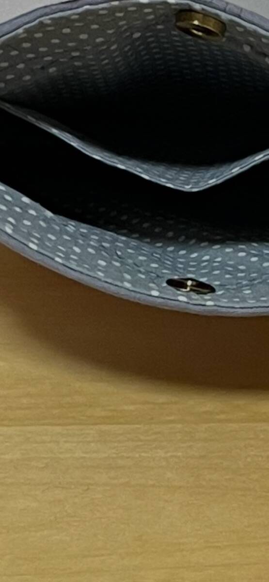 中にはポケットを付け、口にはマグネットボタンを付けました。