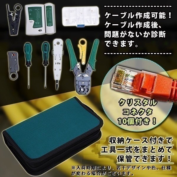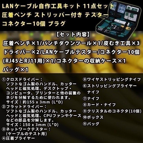 LANケーブル 自作工具 キット 11 点 セット 配線 圧着ペンチ ストリッパー テスター コネクター 10 個 接続 端子 修理 ツールボックス 付