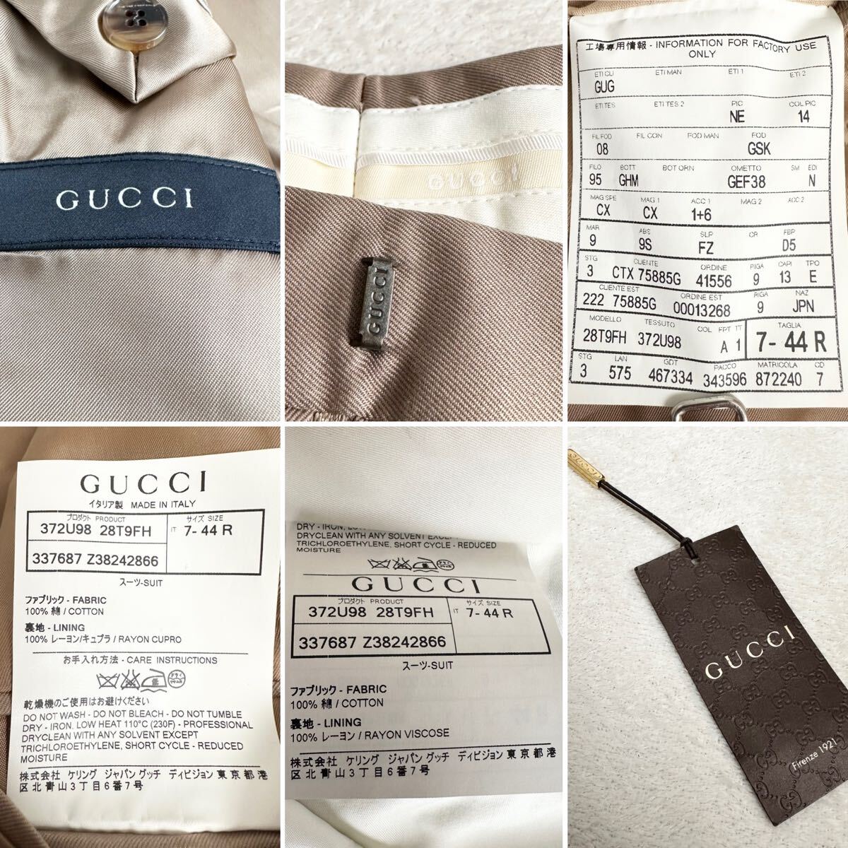 イタリア製のGUCCIらしい上質な仕立てと、ラグジュアリーな光沢を放つコットンスーツです。