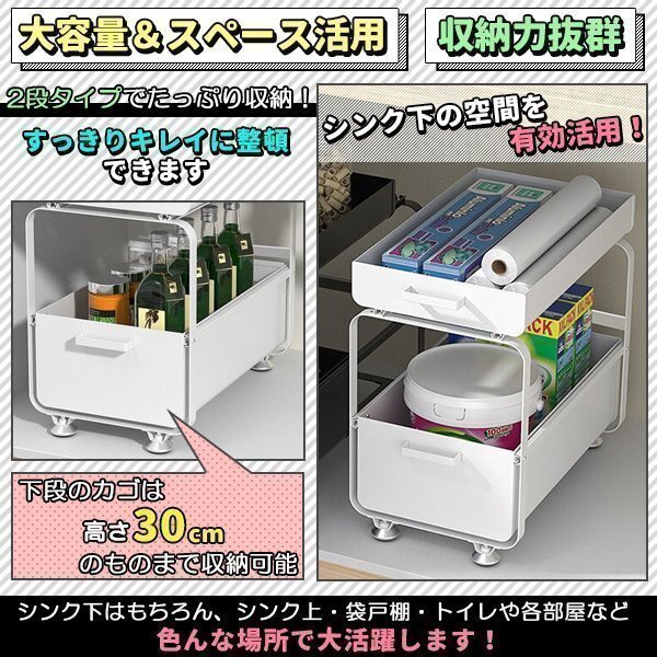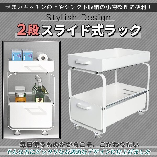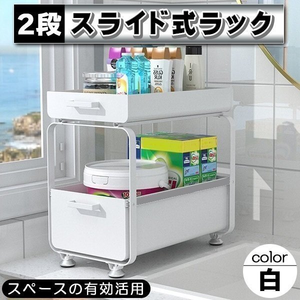 キッチン収納 シンク下 スライドラック 2段 引き出し ホワイト 白 キッチンラック シンク下収納 コンロ下収納 調味料 棚 おしゃれ 収納