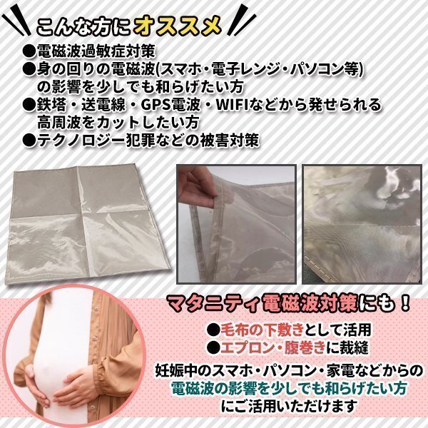 ・電磁波のおなかの赤ちゃんへの影響が少しでも気になる方。本製品を毛布の下敷きとして活用したり、エプロン生地・腹巻きに裁縫することで、妊娠中の携帯電話、パソコンなどからの電磁波の影響を少しでも和らげたい方にもご活用いただけます。サイズ