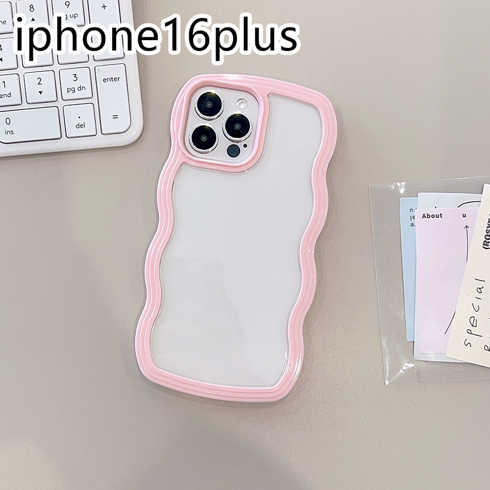 iphone16plusケース カーバー TPU 可愛い 波型 お洒落 軽量 ケース 耐衝撃高品質ピンク