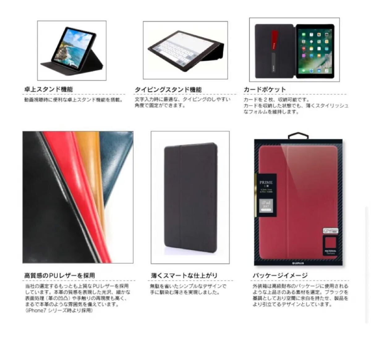 上質なPUレザー生地を使用/2枚のカード収納ポケット/動画鑑賞・タイピングに最適な2つの角度のスタンド機能