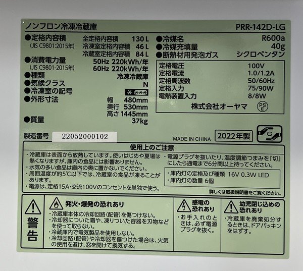 §【IRIS OHYAMA アイリスオーヤマ 2023年製 2ドア冷凍冷蔵庫 PRR-142D-LG 130L レトロ コンパクト 大容量】Q09250