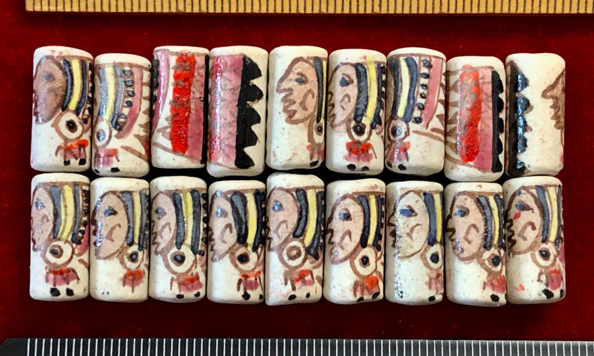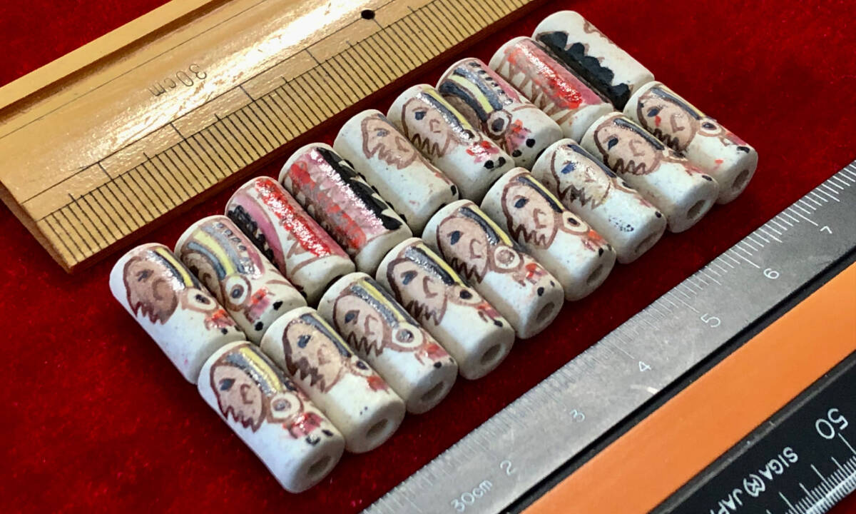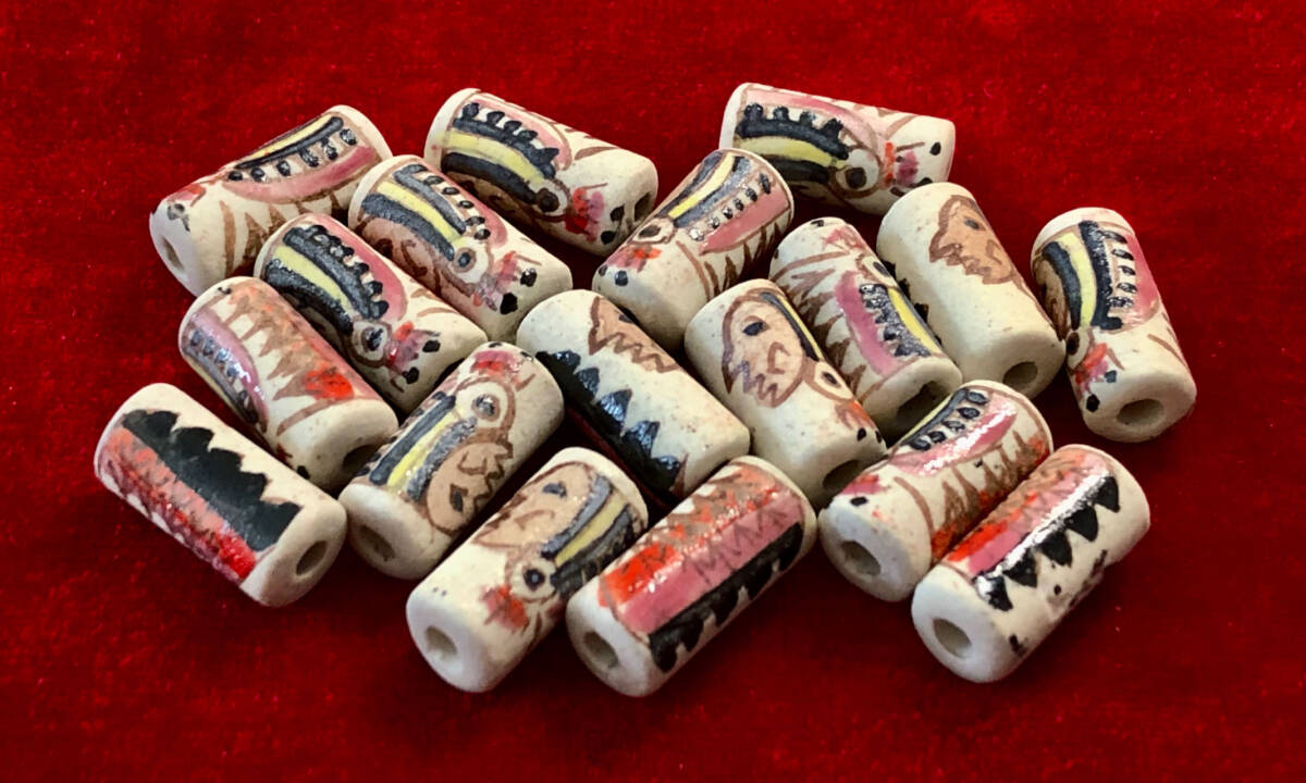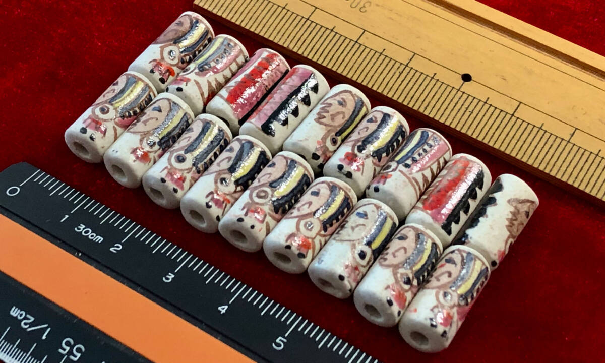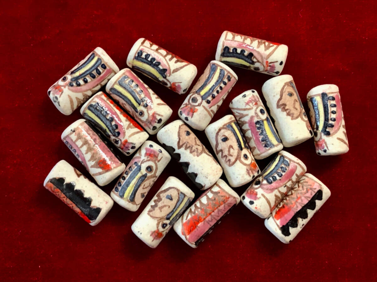 Φ 彩陶素焼ビーズ Φ 100玉で1単位 約8㎜×16㎜円柱型玉 手作り インディアン紋様 手芸 ネックレス ブレス アクセサリー インテリア材料