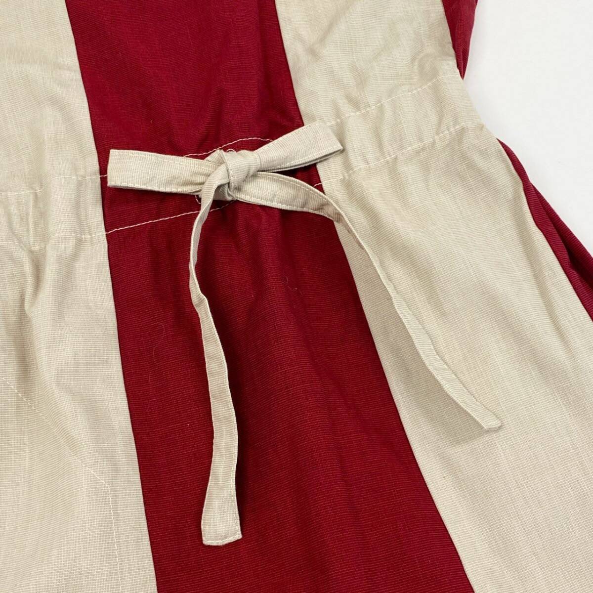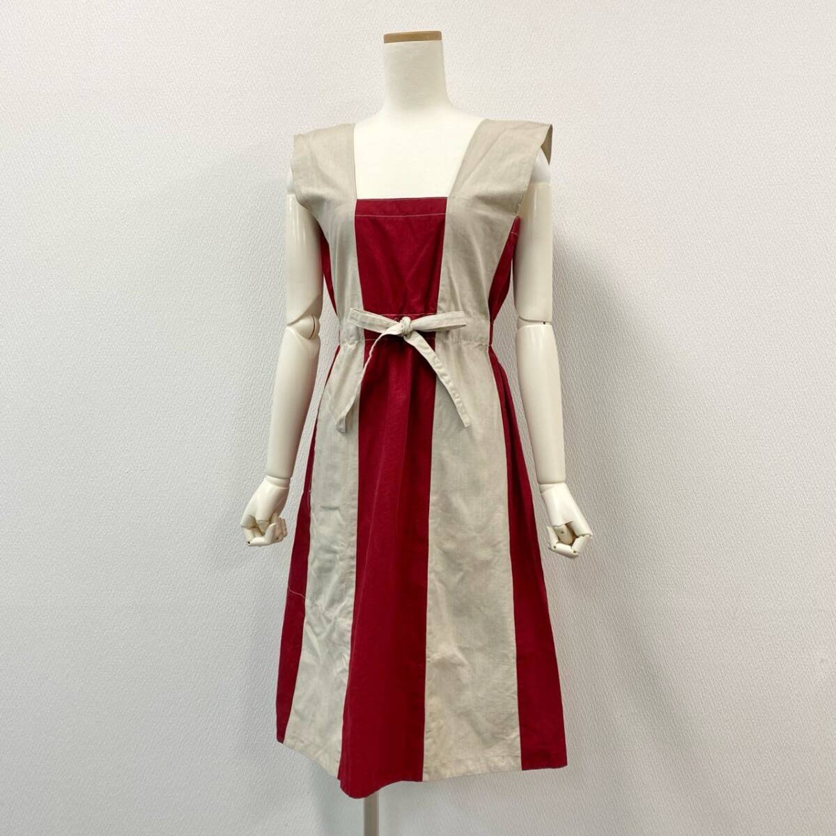 | スタッフ商品コメント | KENZOのヴィンテージノースリーブワンピースです。カラーはレッド×ベージュのワイドストライプ柄で、強いコントラストが目を引くデザイン。マットなコットン素材をベースに、ウエストベルトでシルエットの変化を楽しめるのも魅力です。存在感のあるデザインながらもシンプルな構造で、カジュアルな夏のお出かけやリゾートシーン、アートイベントなどに最適。ヴィンテージらしい独特の雰囲気がスタイリングに個性を与える一着です。 |