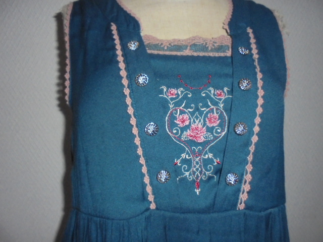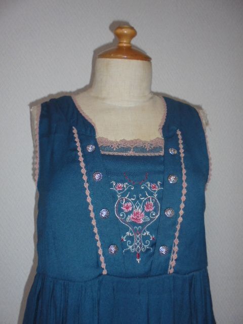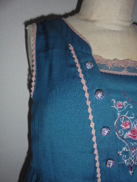 上身胸当て部分切替が入り、バラモチーフの刺繍が