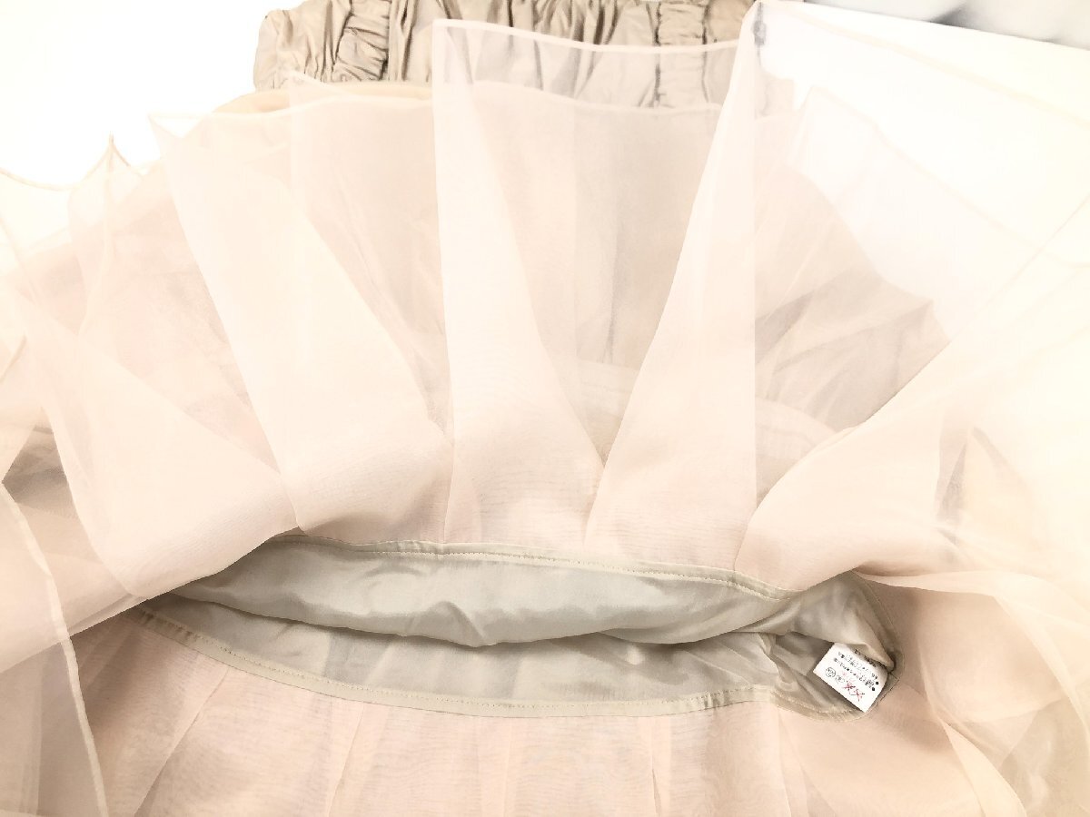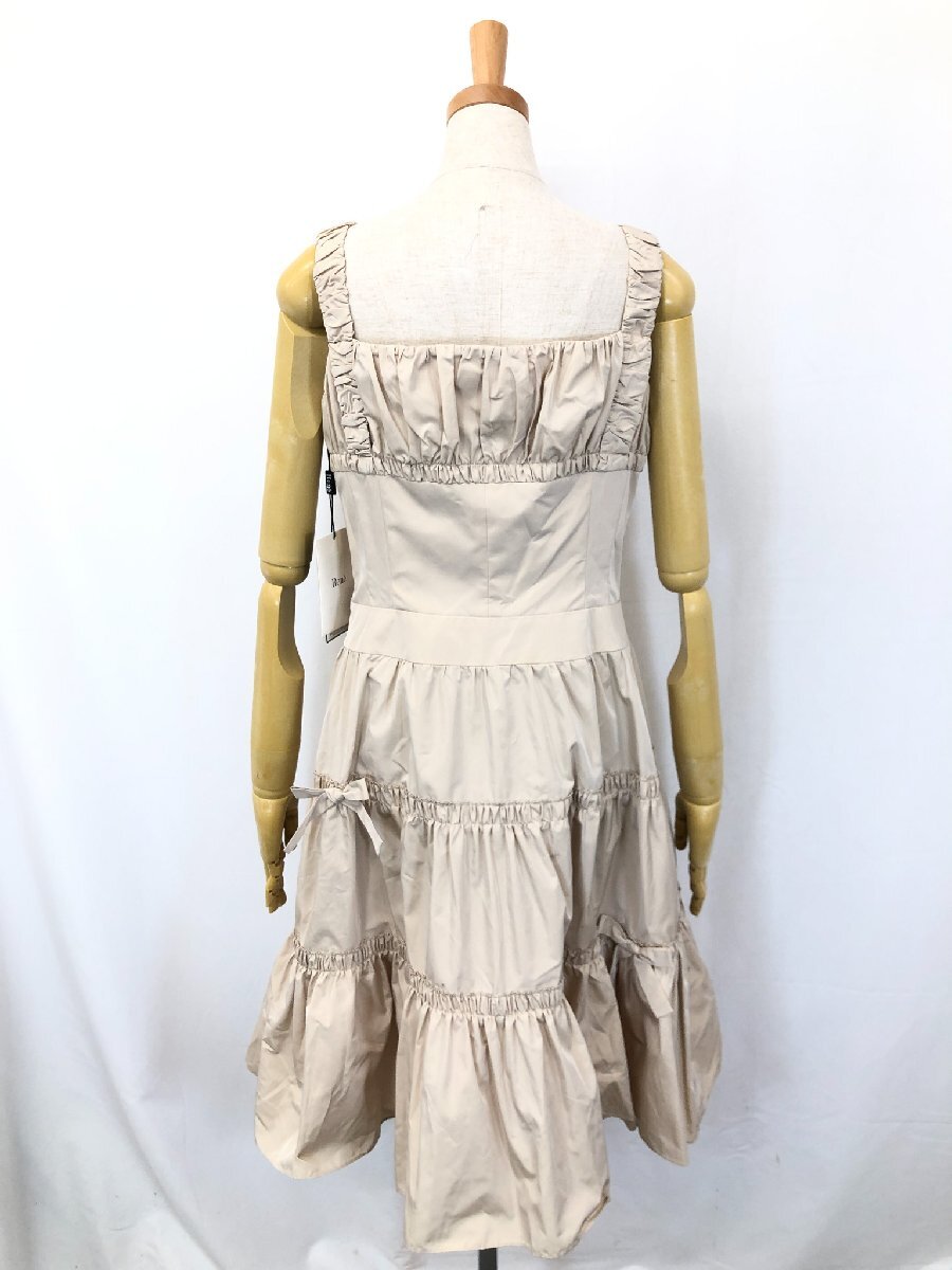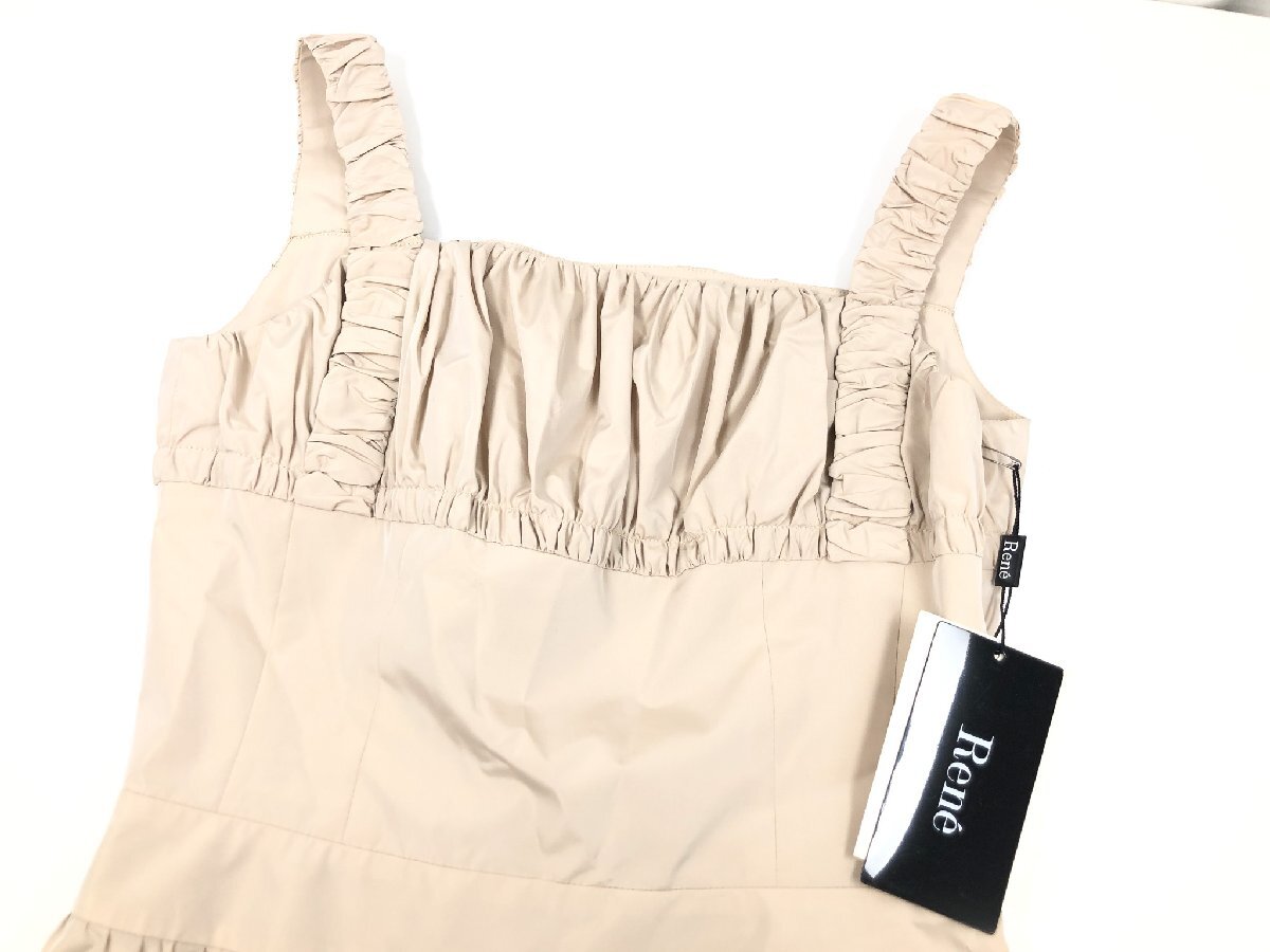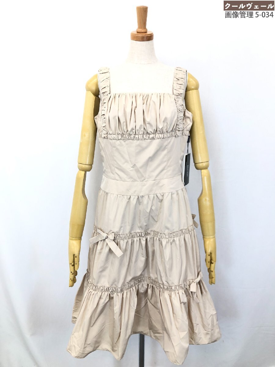 未使用【ルネ Rene】6026440 リボン装飾 オーガンジー裏地 ノースリーブワンピース ドレス (レディース) size38 ベージュ系◇17LO3830◇
