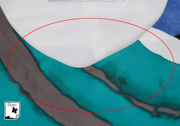 コンディション | 2022S/Sルック着用モデルです。襟ぐりに黄ばみ、脇裏にシミがあります(写真参照)その他目立ったシミ、汚れ、ほつれ等なくいい状態です。クリーニング済み。 |