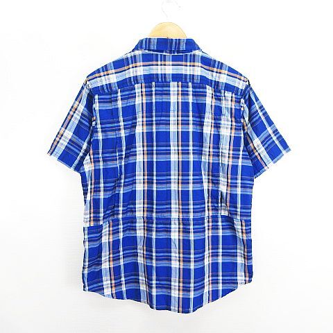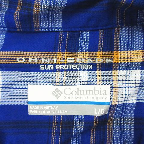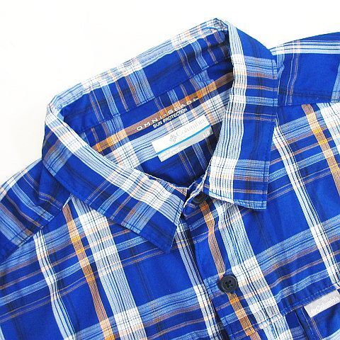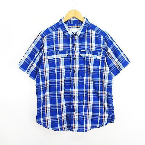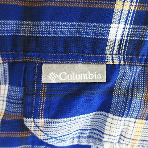コロンビア Columbia AE0648 シャツ 半袖 チェック ナイロン L ブルー ※EKM メンズ