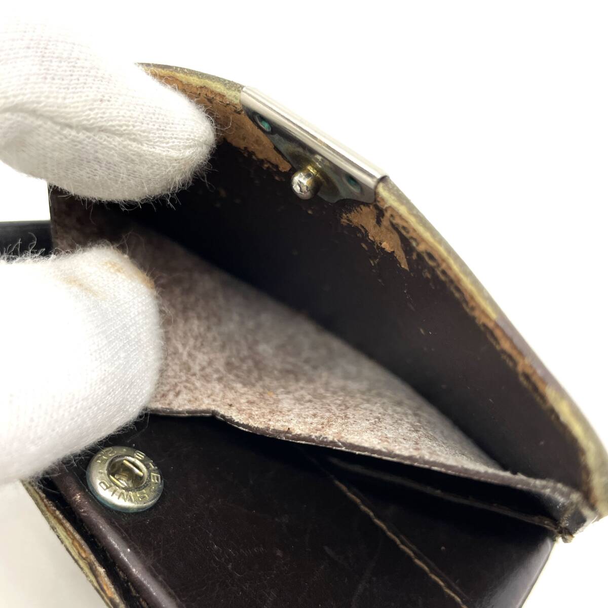 二つ折り コインケース 小銭入れ アナグラム ダークブラウン系 シルバー金具 ウォレット