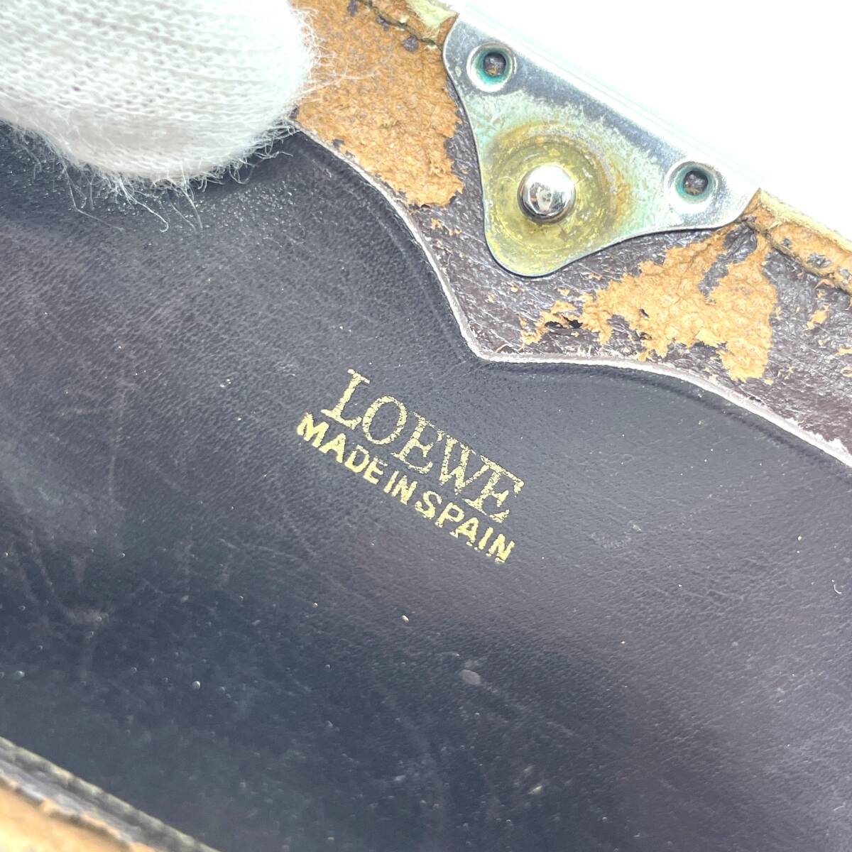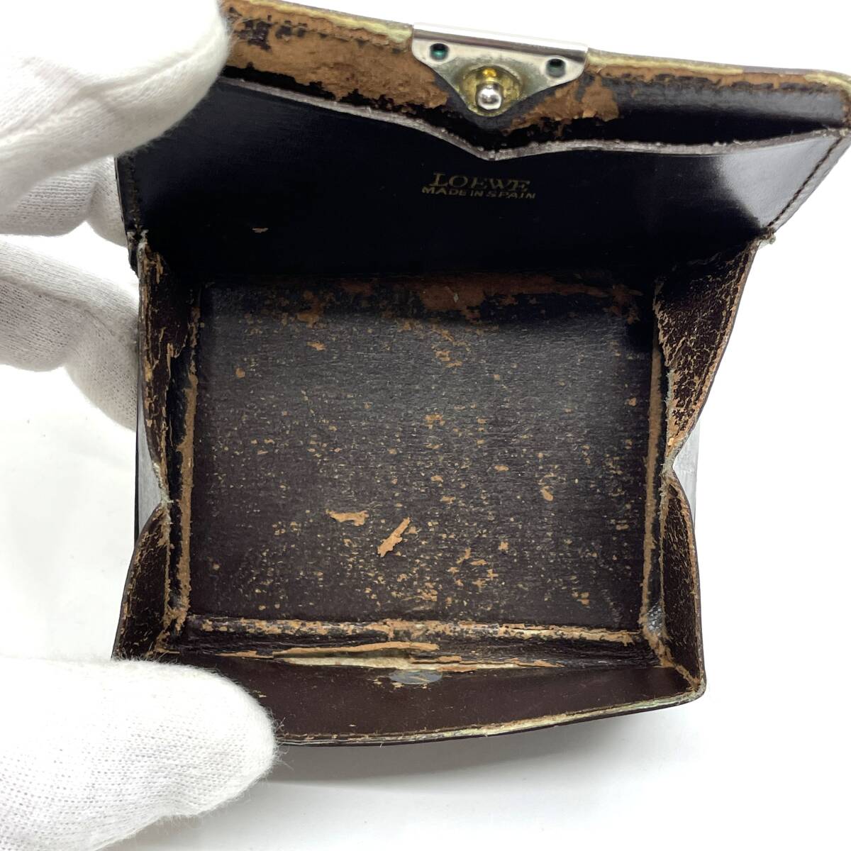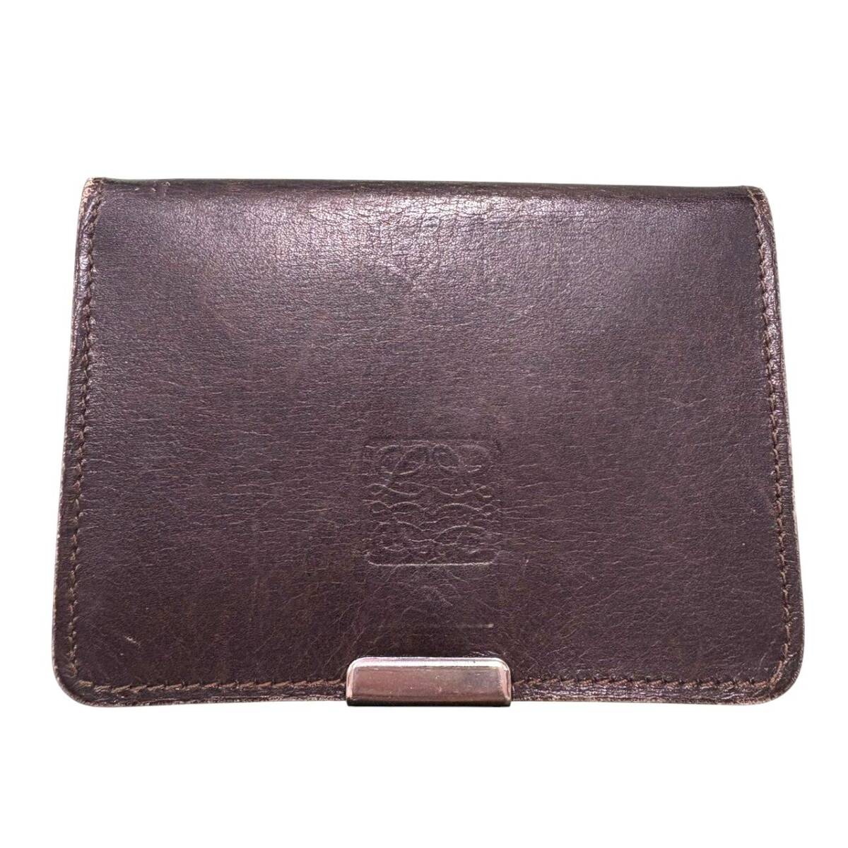 LOEWE ロエベ 二つ折り コインケース 小銭入れ アナグラム ダークブラウン系 シルバー金具 ウォレット