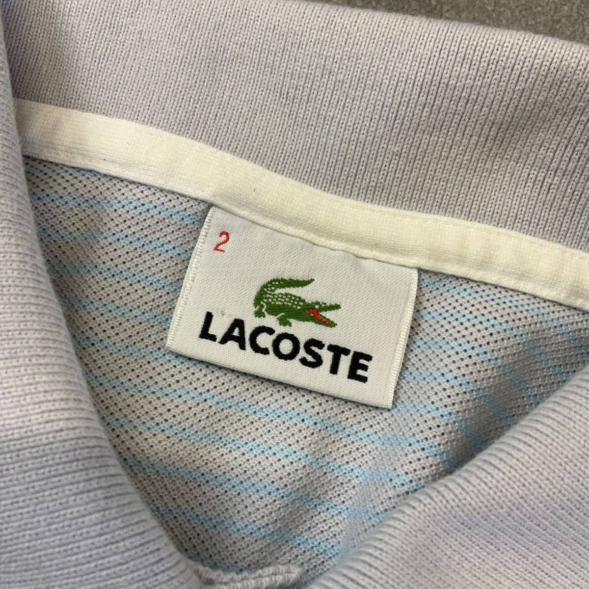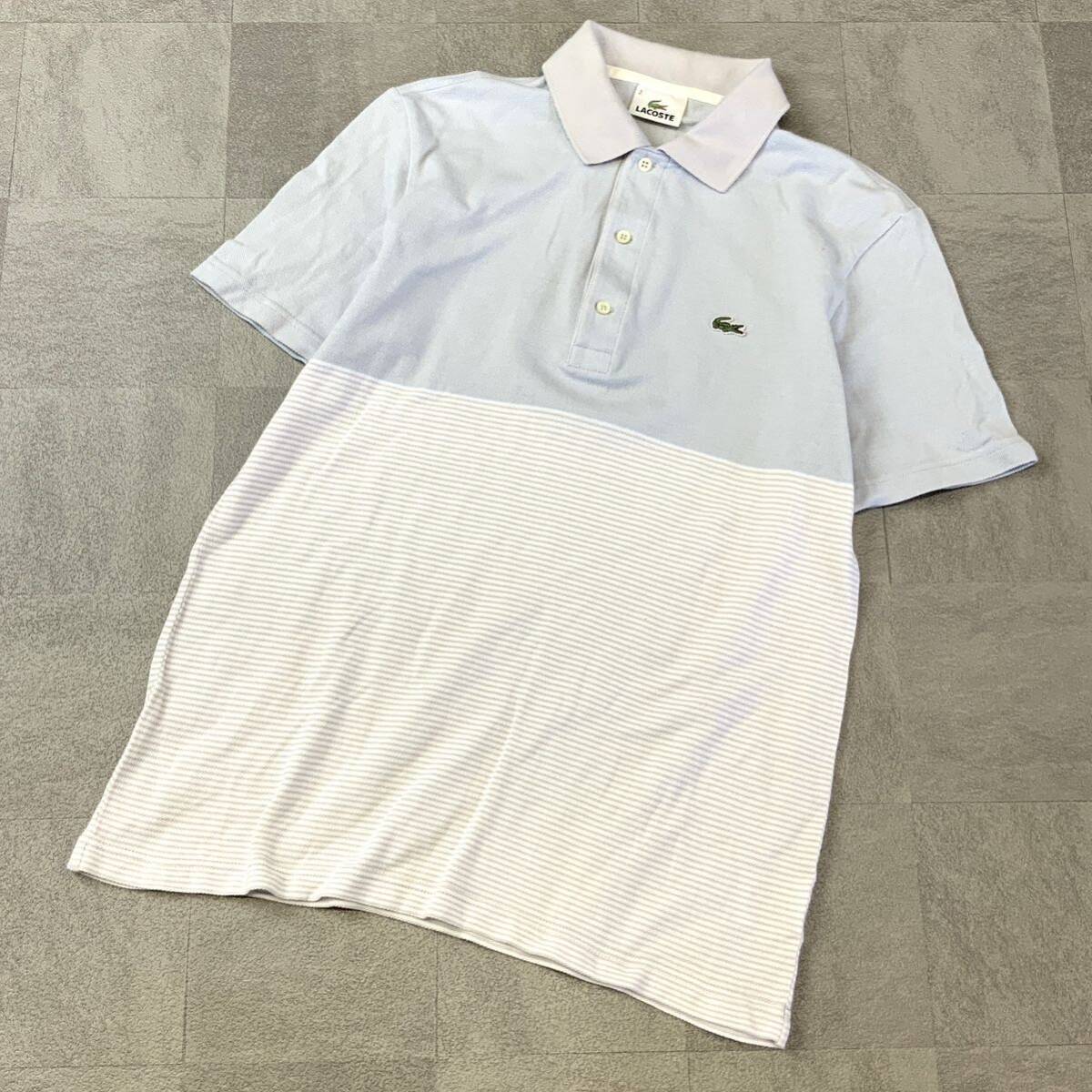 LACOSTE ラコステ バイカラー 鹿の子 半袖 ポロシャツ ボーダー メンズ サイズ2 ホワイト